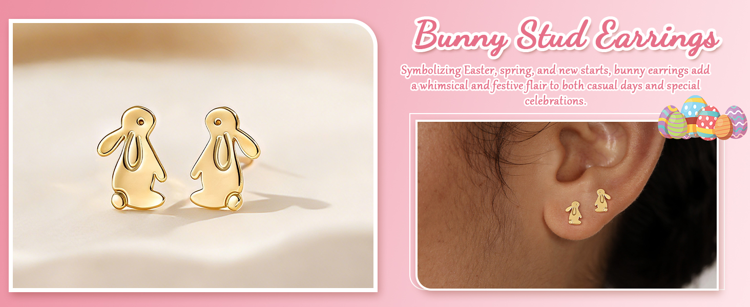 HEVOCY Delicate Bunny Stud Earrings - Product Description
