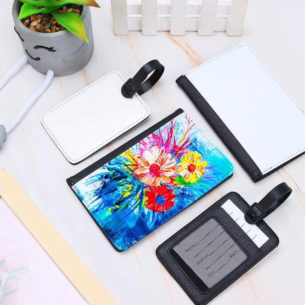 4 قطع حامل جواز السفر التسامي وعلامة الأمتعة مجموعة هدية بو الجلود فارغة نقل الحرارة السفر جواز السفر كتاب حامل محفظة غطاء مع بطاقة الهوية السفر لبطاقات العمل السفر الأمتعة, محفظة سفر