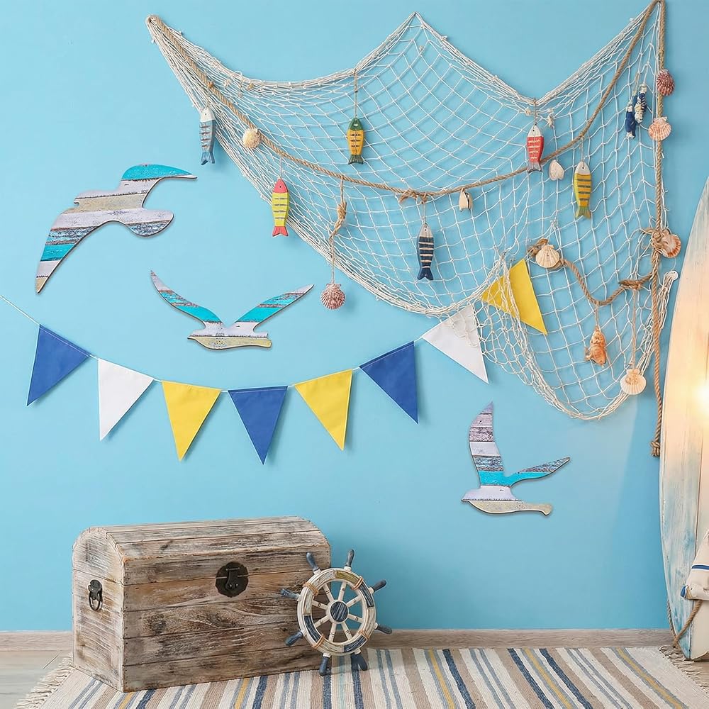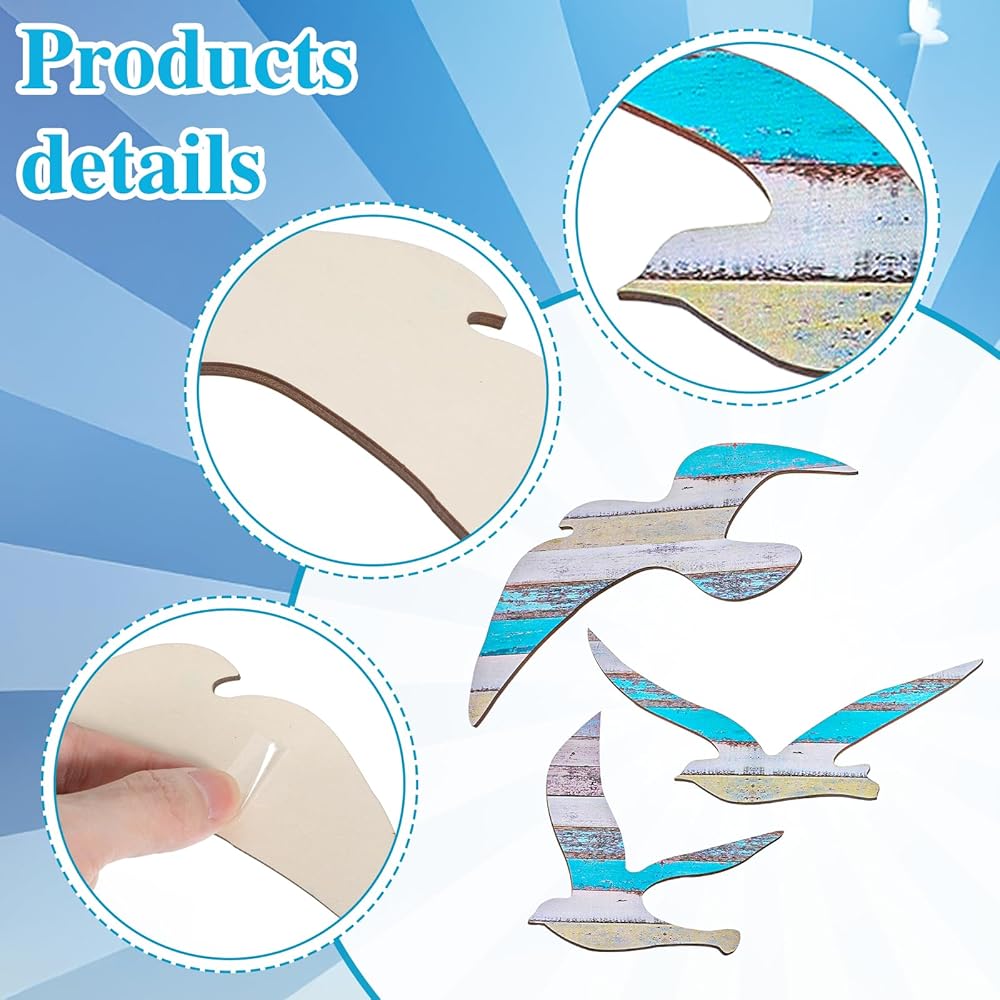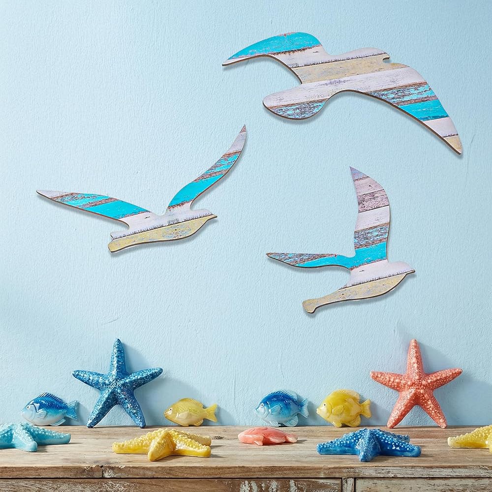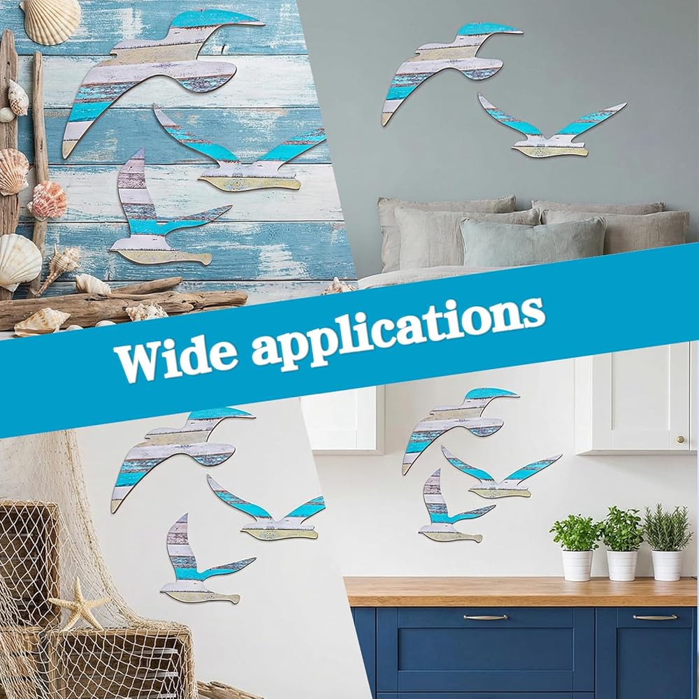 • 3Pcs Wood Seagull Beach Wall Decor Wall Art Beach Decorations Nautical Self-adhesive Seagull Decorations - This set includes 3 seagull decorations in multicolor, made from beechwood, iron, and paper, designed as beach wall art or seagull decor to add a marine atmosphere to your home.
