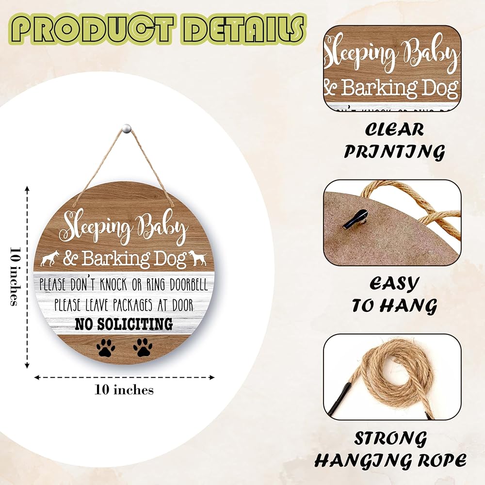 • Eye-Catching Design - This round sign has been carefully designed and professionally printed in vibrant colors, with a clear message that ensures anyone approaching your home understands the need for quiet, whether it's nap time or a night's rest.