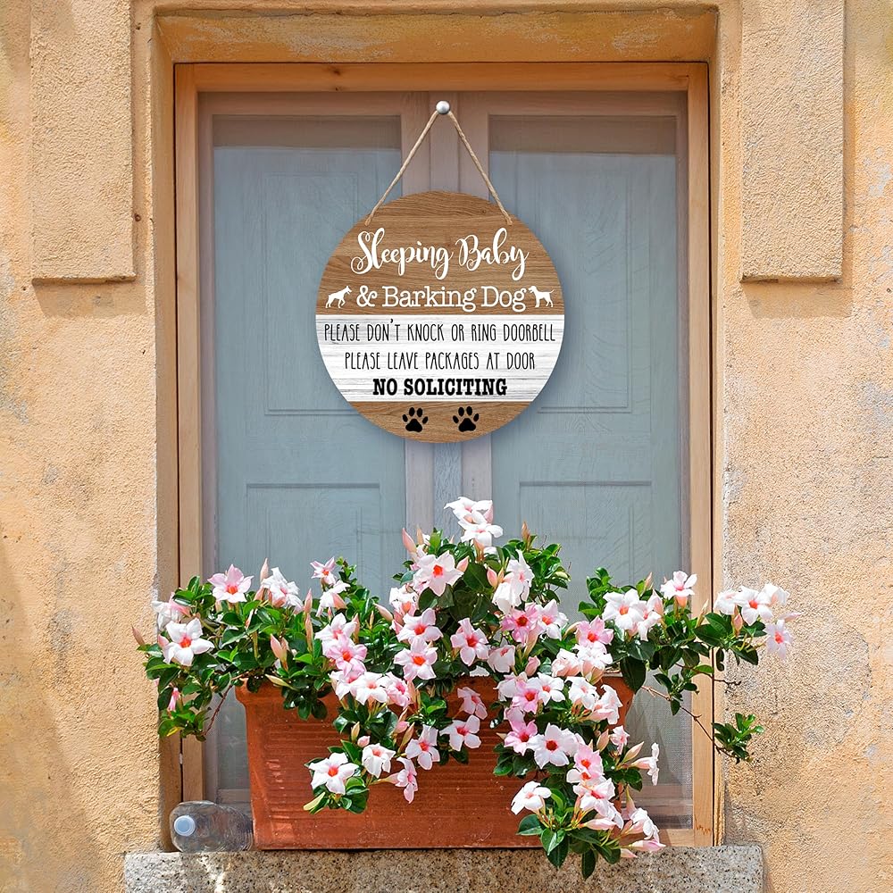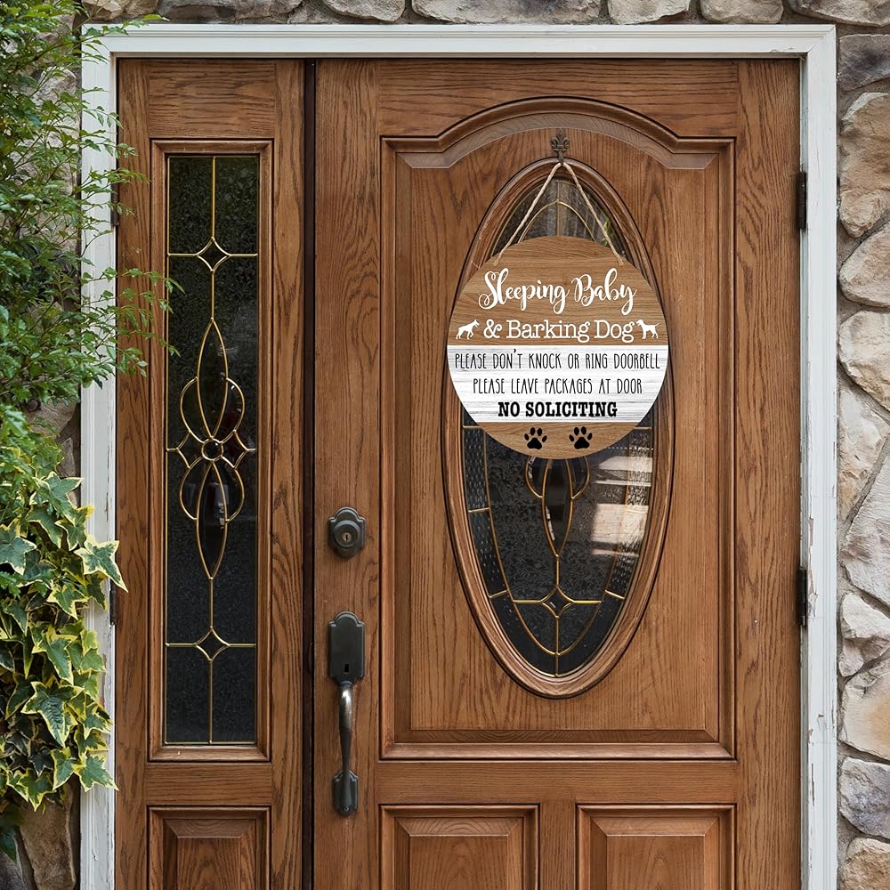 Display Scene - Our signs use a polite but firm tone to discourage knocking or ringing the doorbell without appearing rude. Whether you hang it on your front door, yard gate, or hang it near the doorbell, it will fit perfectly into your home decor.