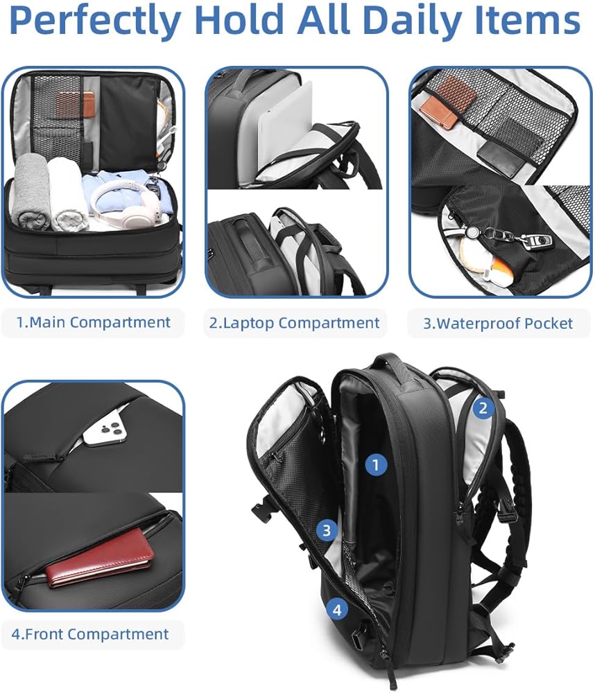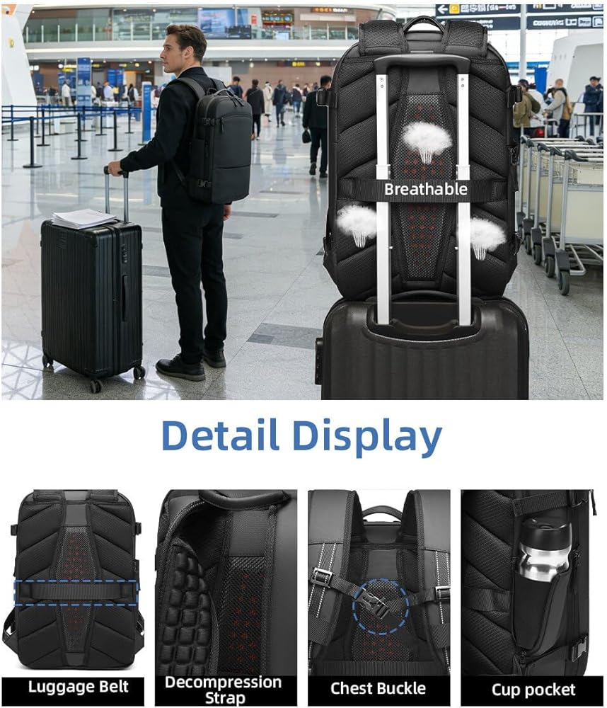 تقنية ضغط الفراغ: نظام ضغط الهواء المبتكر يسمح لك بتقليل حجم حقيبة الظهر بنسبة تصل إلى 50 بالمائة، مما يخلق مساحة إضافية لمزيد من العناصر مع الحفاظ على المحتويات منظمة وصغيرة الحجم.