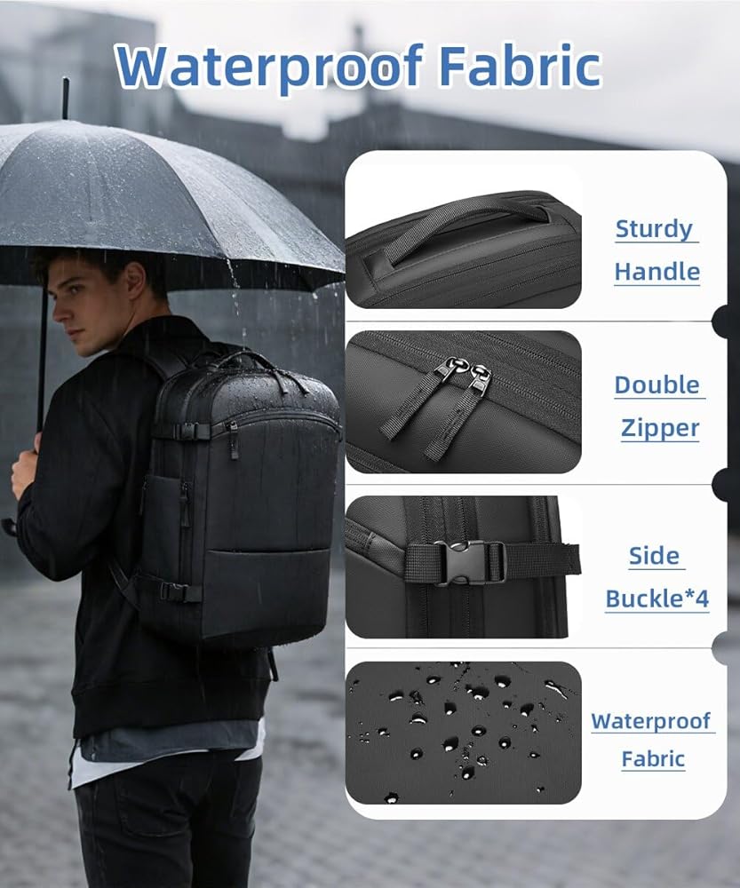 هيكل مقاوم للماء: نسيج متين مقاوم للماء وسحابات محكمة الغلق تحافظ على مقتنياتك جافة ومحمية من المطر والسوائل المنسكبة والرطوبة في أي ظروف جوية.