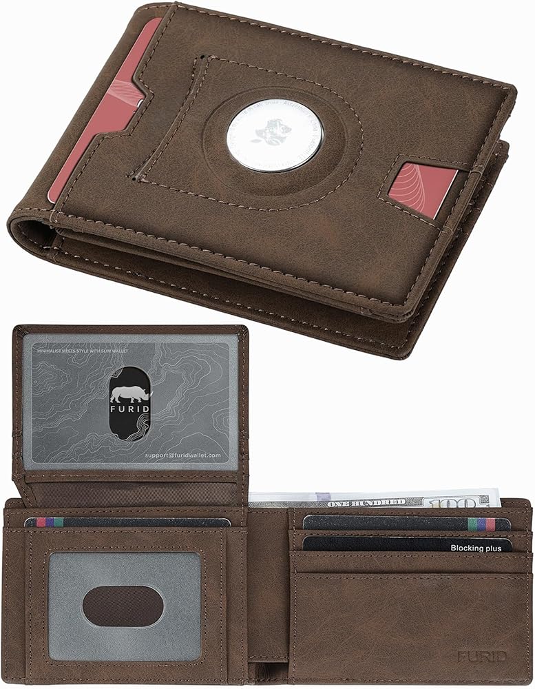 محفظة furid Air Tag للرجال رفيعة: محافظ جلدية صغيرة الحجم بنافذة لبطاقة الهوية RFID مع حامل بطاقة هوائية - هدايا للأب الزوج في ذكرى عيد الميلاد