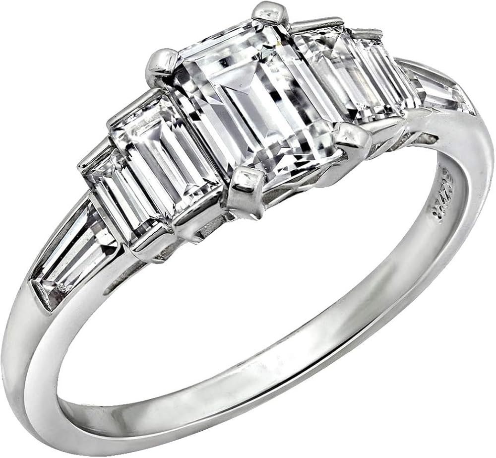 خاتم DIAMONBLISS من الفضة الإسترليني المكعبة من الفضة الإسترليني وقطع الزمرد ومطلي بالبلاتينيوم