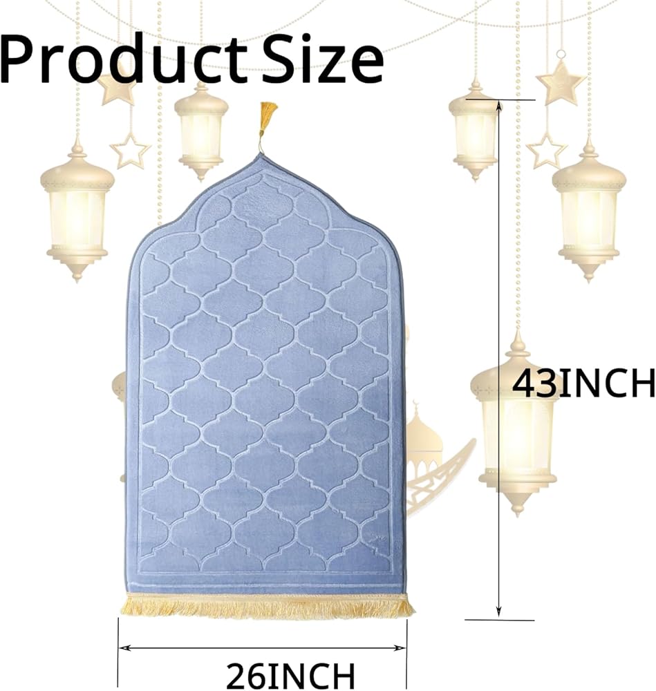 الحجم والتصميم الكلاسيكي: بأبعاد واسعة تبلغ حوالي 43 بوصة × 26 بوصة (110 × 65 سم)، توفر سجادة الصلاة الإسلامية هذه مساحة واسعة للعبادة. يخلق نمطها المقوس التقليدي والشرابات الأنيقة مظهرًا بسيطًا وكريمًا يساعد على التركيز ويعزز جوًا هادئًا، ويعمل كإسلام عملي غير لامع للصلاة وديكور إسلامي أنيق لأي ديكور لغرفة الصلاة.