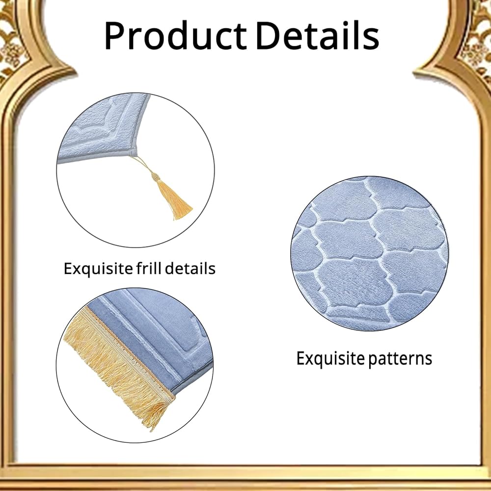 مادة سميكة مريحة: سجادة الصلاة المبطنة هذه مصنوعة من نسيج قطني ناعم، مما يوفر ملمسًا صديقًا للبشرة يخفف بشكل فعال الضغط على الركبتين والمفاصل أثناء السجود، مما يضمن دعمًا مريحًا لجلسات الصلاة الممتدة. إنها سجادة صلاة مثالية للاستخدام اليومي.