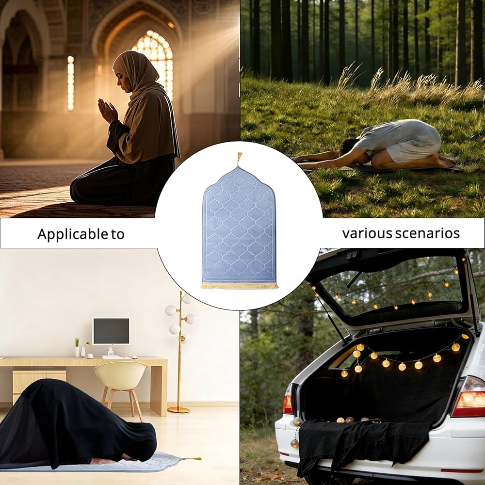 محمولة وسهلة الحمل: خفيفة الوزن وصغيرة الحجم عند طيها، يتم تخزين سجادة الصلاة للسفر هذه بشكل مريح في حقيبة الظهر أو حقيبة السفر، وهي مثالية للاستخدام في المنزل أو في الرحلات أو أثناء التخييم أو عند زيارة المساجد. إنها عنصر أساسي للنساء في العمرة وخيار عملي لأي رحلة.