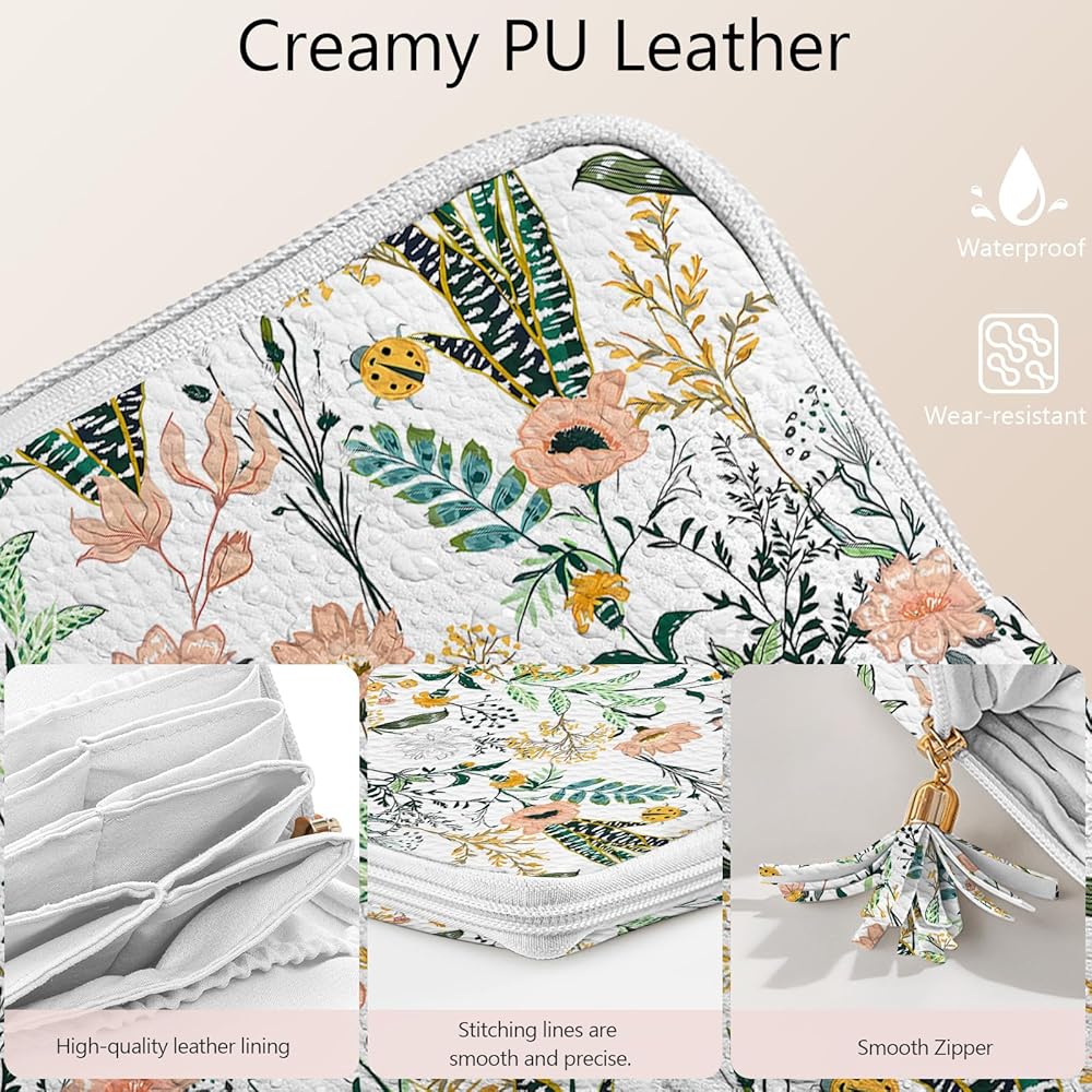 حقيبة تنظيم مجوهرات السفر، حقيبة تخزين لتنظيم المجوهرات المخملية بسحاب، حلقات الرحلة، القلائد، الأقراط، الأساور للنساء (عشب الزهور)
