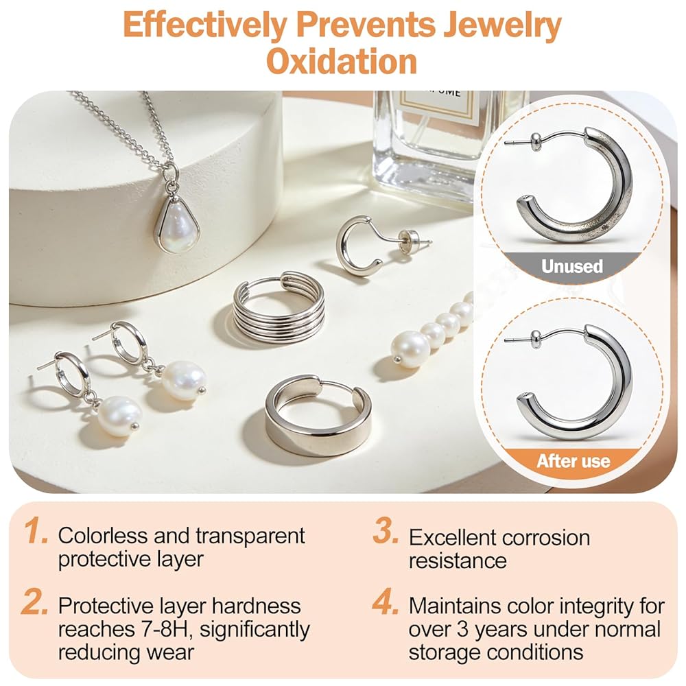 Long-Lasting Protection & Enhanced Durability – Forms a transparent, high-hardness coating that is highly resistant to wear, scratches, and daily abrasion. This layer helps maintain the jewelry's pristine appearance, significantly extending its lifespan despite frequent wear