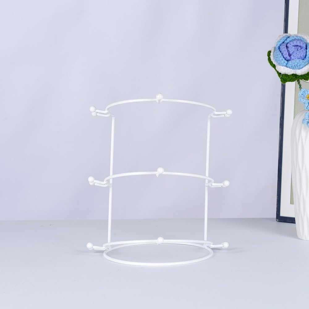 حامل عرض التاج، حامل عرض لعصابة الرأس ثلاثي الطبقات باللون الأبيض، منظم إكسسوارات الشعر بين قوسين، صينية تخزين لزينة الحمام للنساء والفتيات