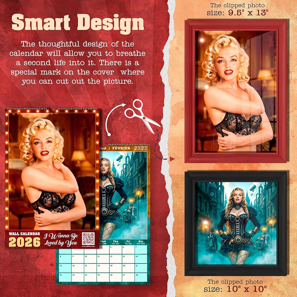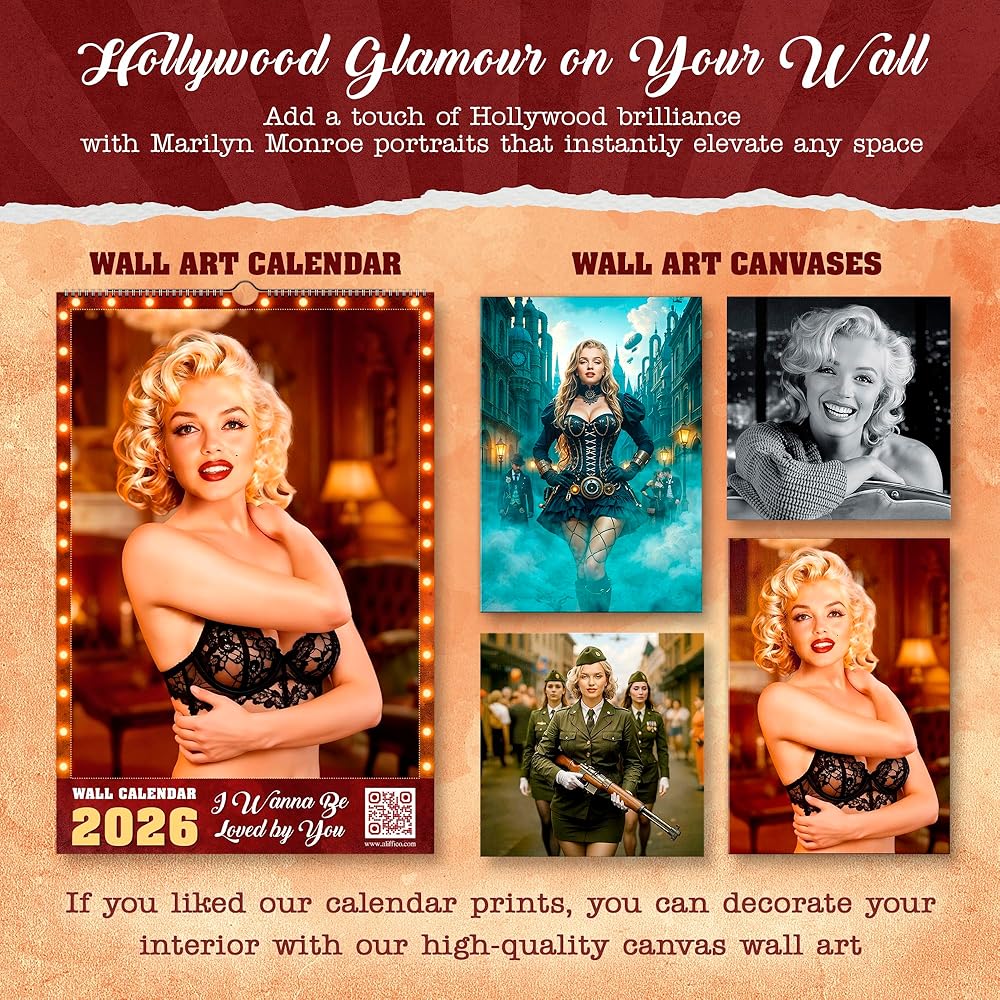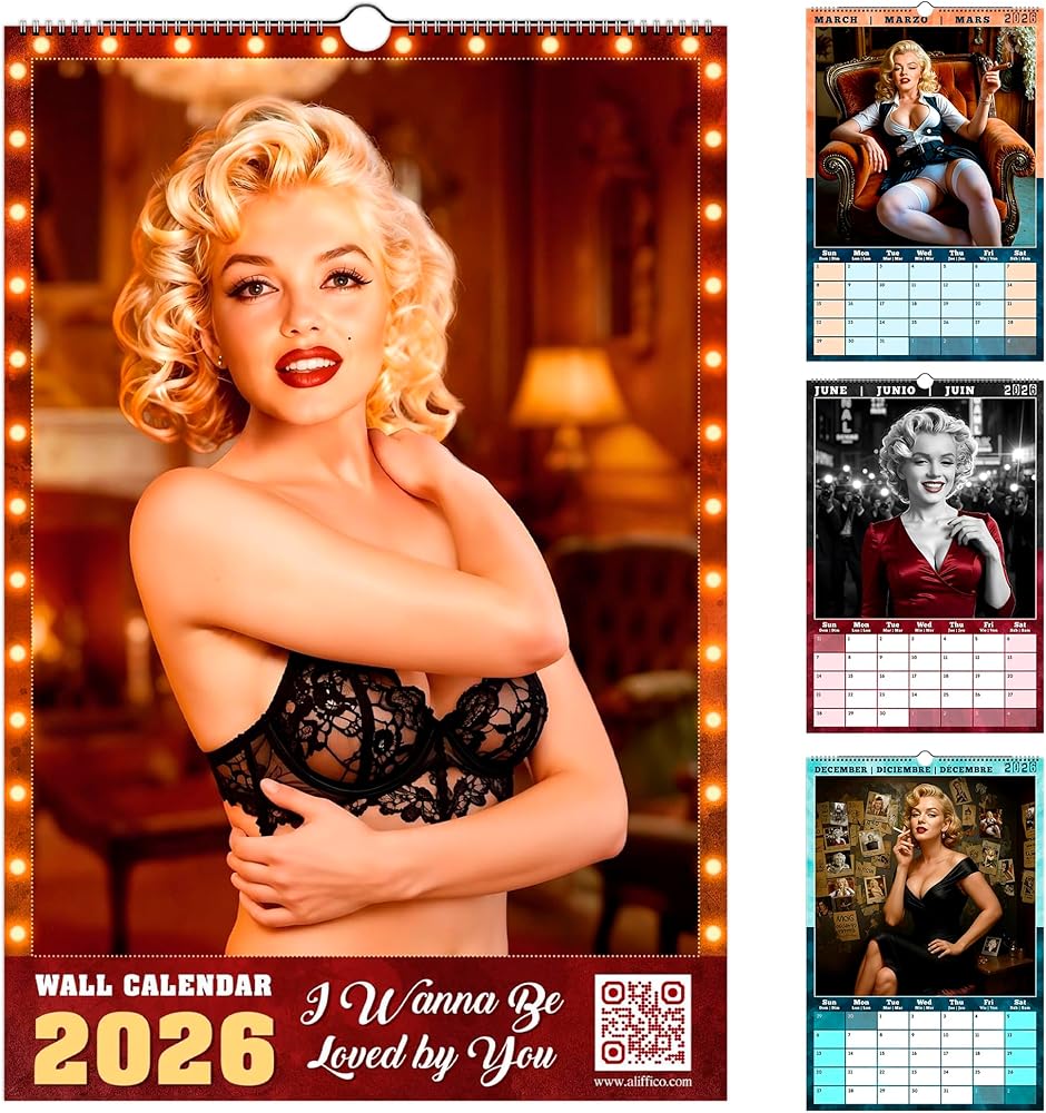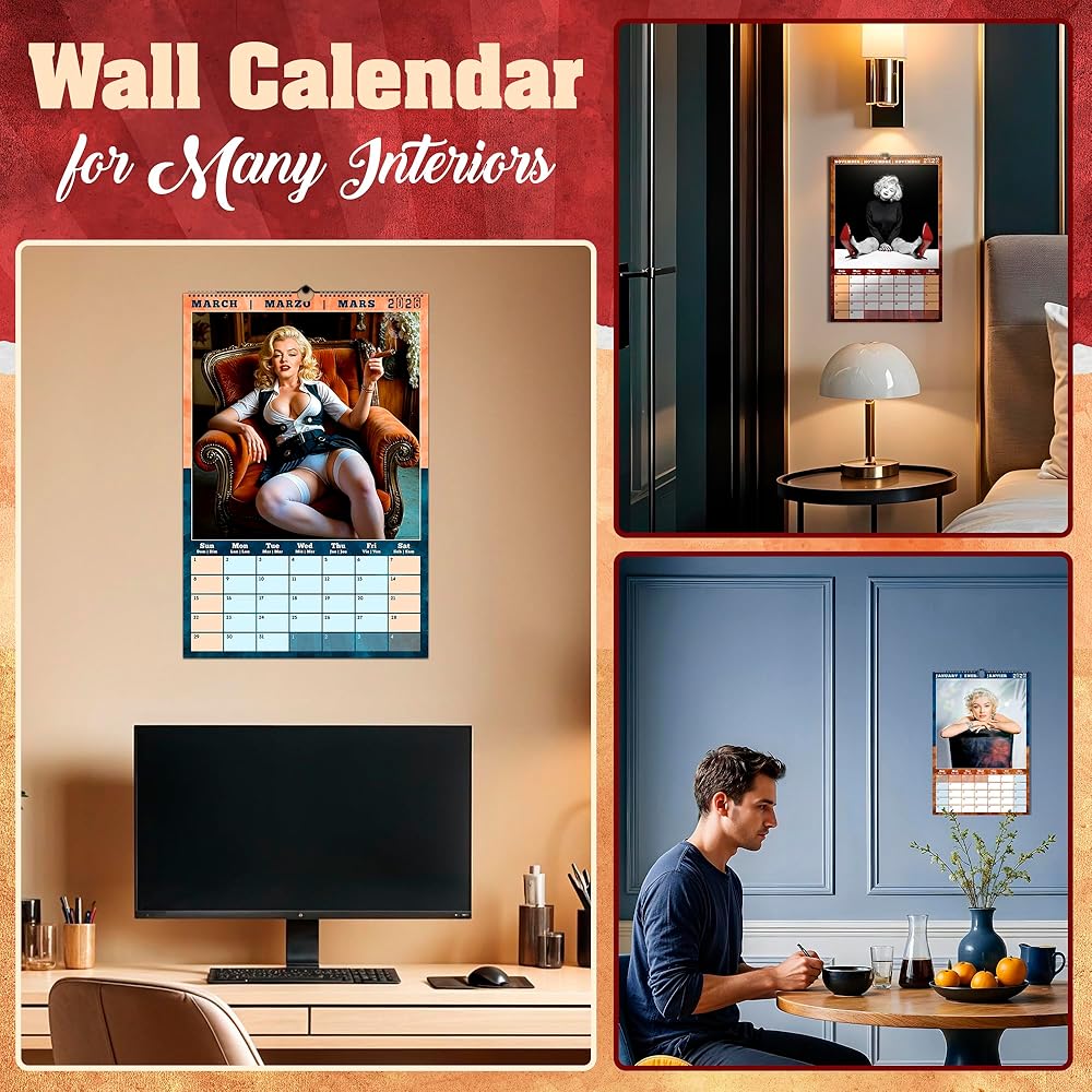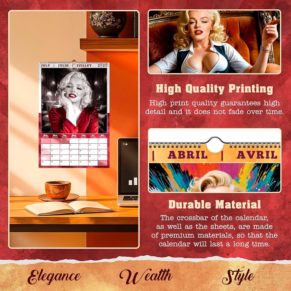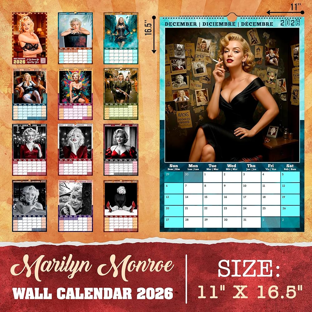 • بريق خالد، كل شهر. احتفل بعام 2026 مع تقويم حائط مارلين مونرو الذي يضم اثنتي عشرة صورة مذهلة لنجم هوليود الأكثر شهرة. قطعة ديكور مثالية للحائط وتنظيم المكتب تلهم الثقة والأناقة يوميًا.