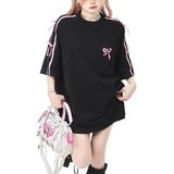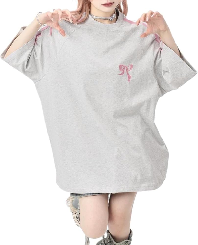 الصيف الكورية القوس فضفاض أسود قصير الأكمام تي شيرت الإناث Y2K تصميم تحسس المتخصصة Ins الحلو والتوابل المطرزة in Kuwait
