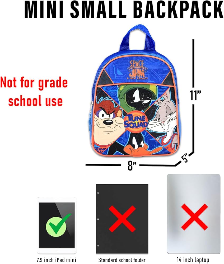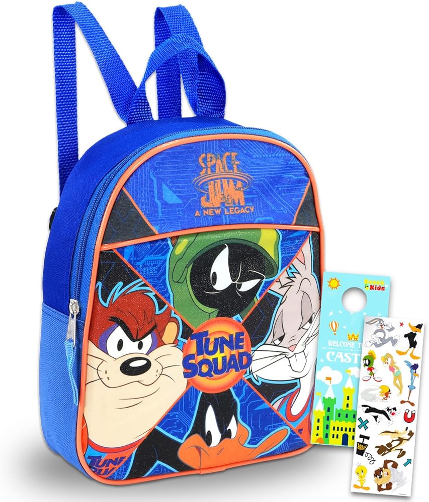 • Space Jam Mini Backpack for Boys - Bundle with 11" Looney Tunes Small Backpack Plus Stickers, More | Space Jam Travel Bag for Kids Set.