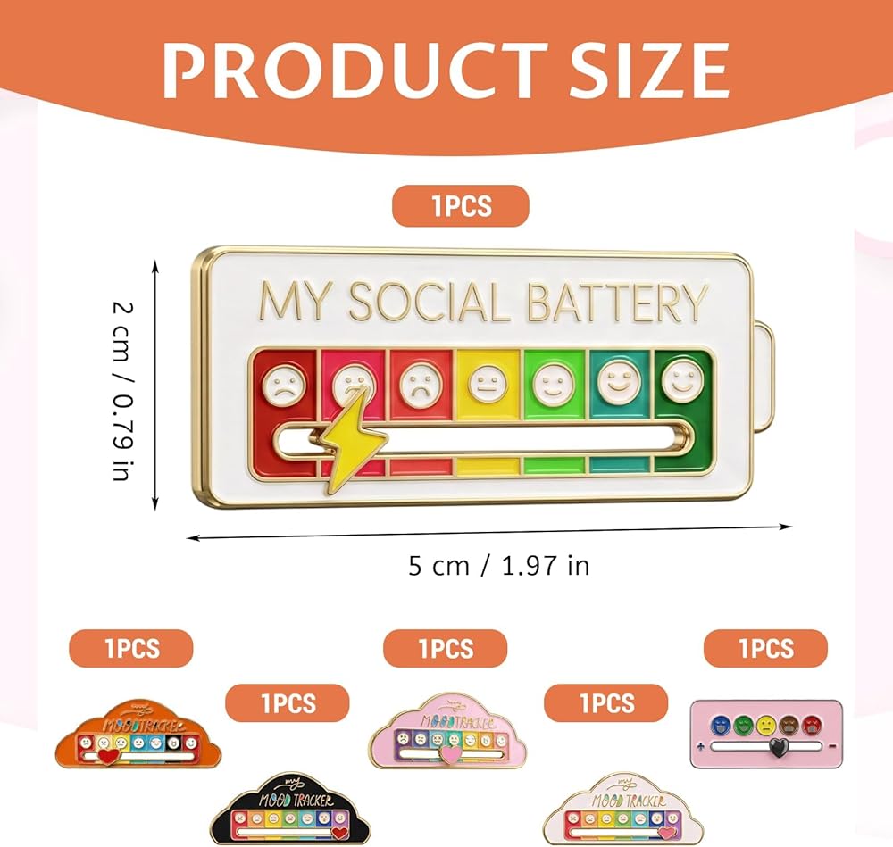 • Meaningful Self-Expression Tool: This social battery pin collection enables authentic mood communication in social contexts; the my social battery slider pin set encourages personal expression and connection with others; suitable for individuals seeking creative communication methods.
