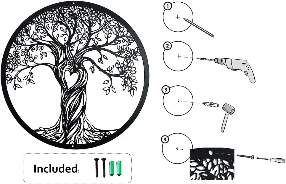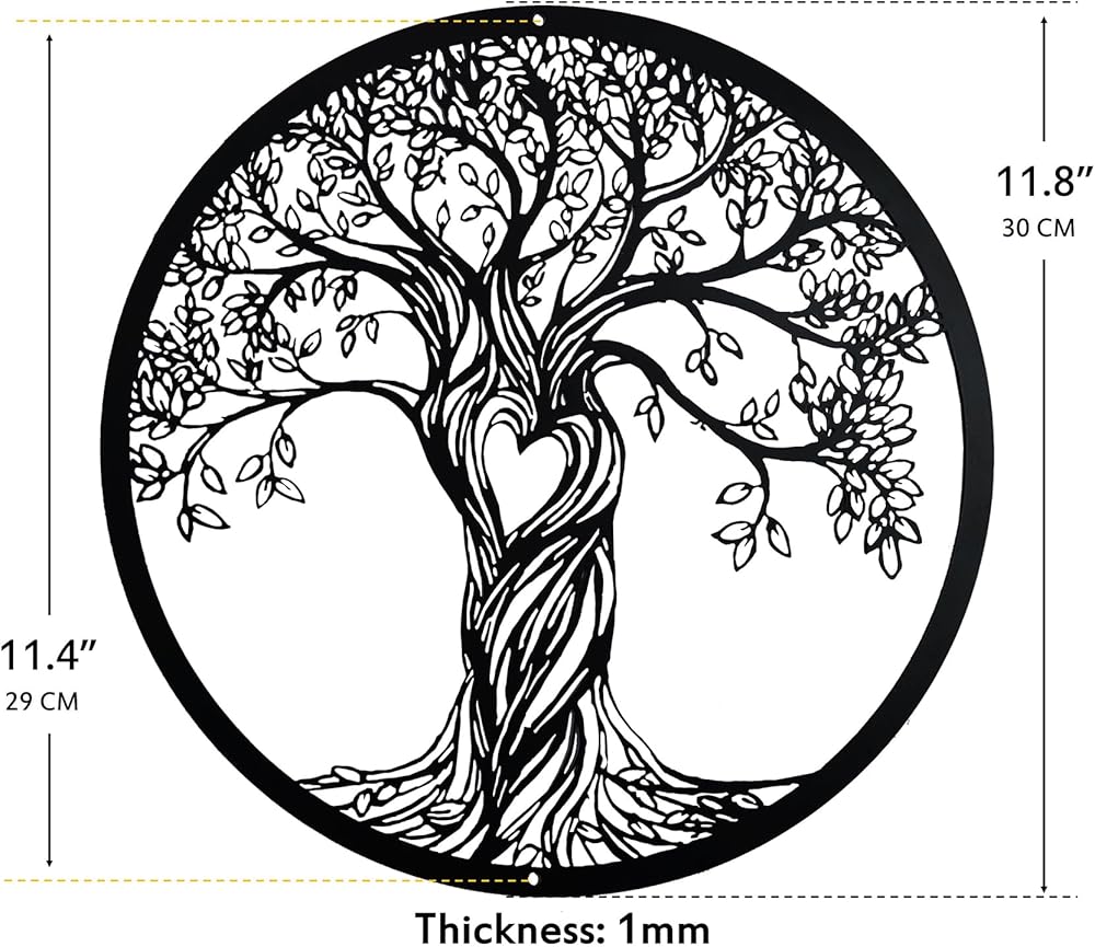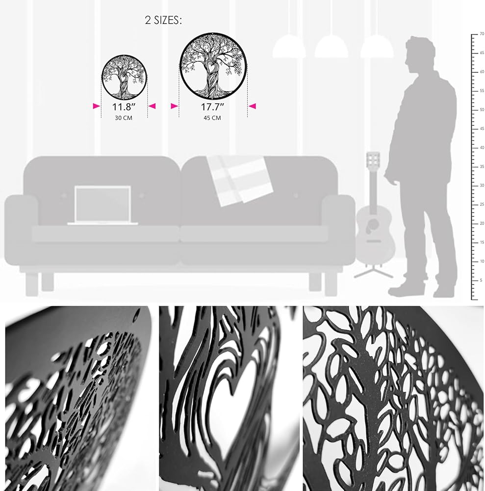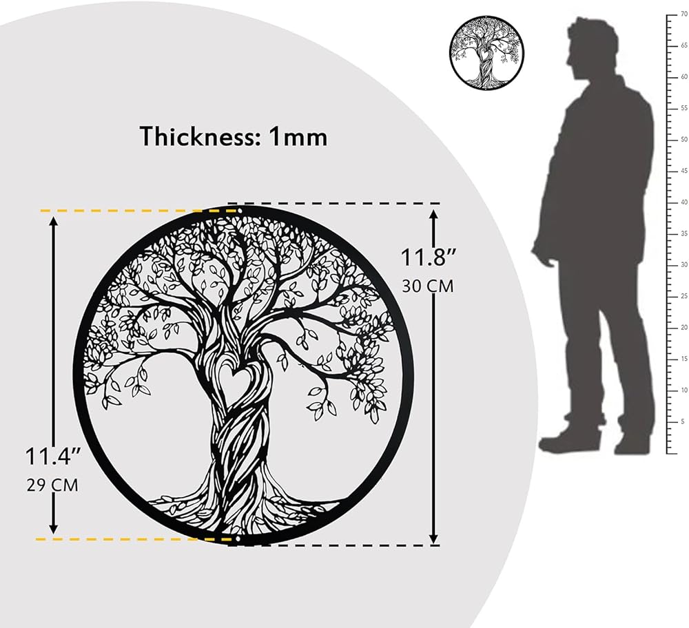 2.Crafted with precision, our Metal Wall Decor features a laser-cut design of a magnificent Tree of Life. The intricate details and rustic black finish add a unique charm to this 12-inch wall hanging.