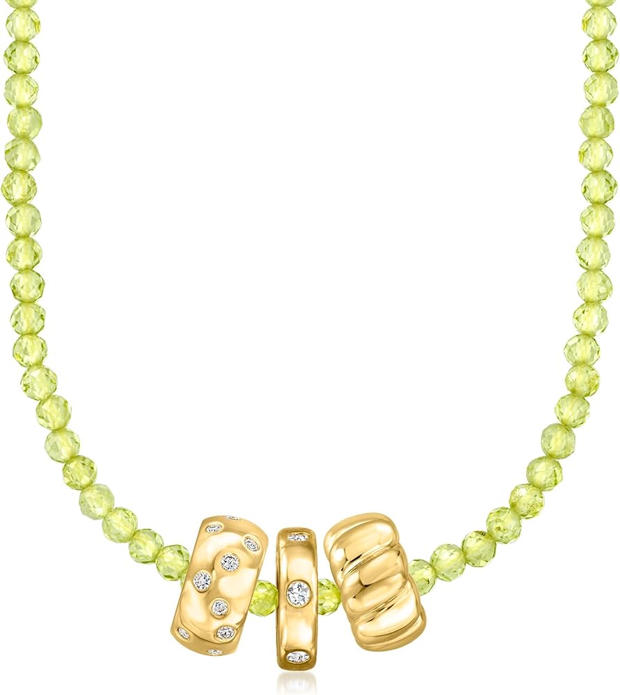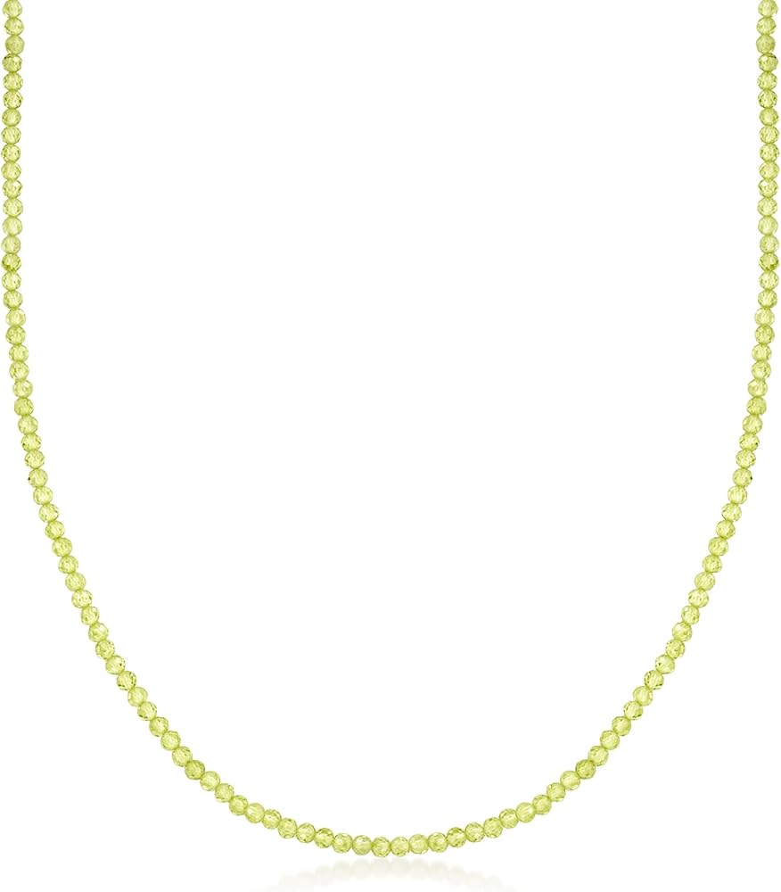 Ross-Simons travels the world to find beautiful, high-quality styles at the best prices. Classic and colorful, our chic necklace presents 30.00 ct. t.w. round faceted peridot beads and finishes with an 18kt yellow gold over sterling silver lobster clasp and 2" extender. Style it into layers for a cool and understated way to represent your August birthstone! Peridot bead necklace.