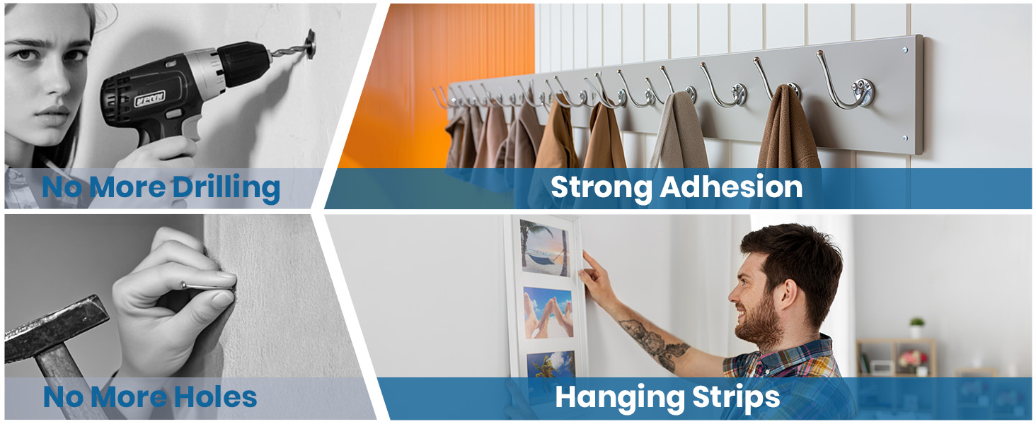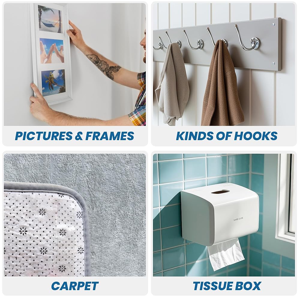 تمزيق باليد، سهل الاستخدام: ما عليك سوى اللصق والضغط والإمساك! يعمل على الأسطح الملساء مثل الخشب والزجاج والبلاستيك والسيراميك. تجنب استخدامه على الجدران المطلية أو ورق الحائط لمنع الضرر. لا تستخدم على الرفوف العائمة. يعمل هذا الشريط اللاصق القوي بشكل مثالي في نطاق درجة الحرارة من 0 إلى 150 درجة فهرنهايت، وهو المفضل للاستخدام الداخلي والخارجي.