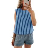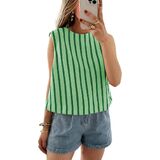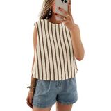 المزايا: سترة علوية نسائية Y2K، بدون أكمام، رقبة دائرية، مخططة، طول قصير، إغلاق بربطة عنق