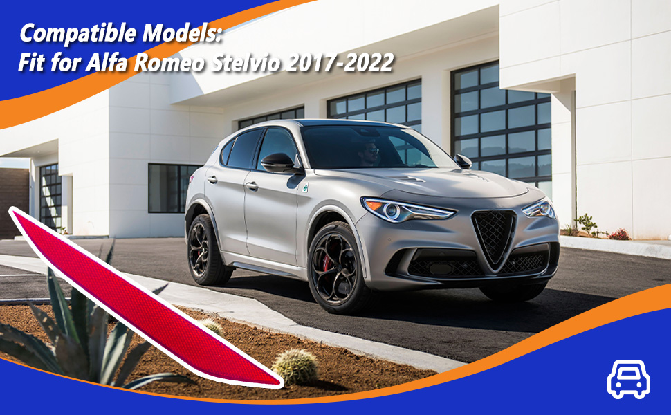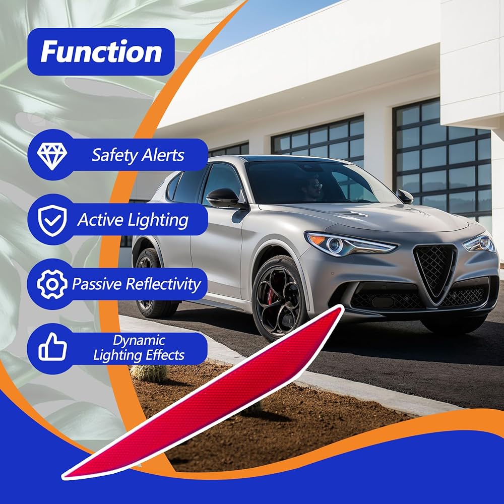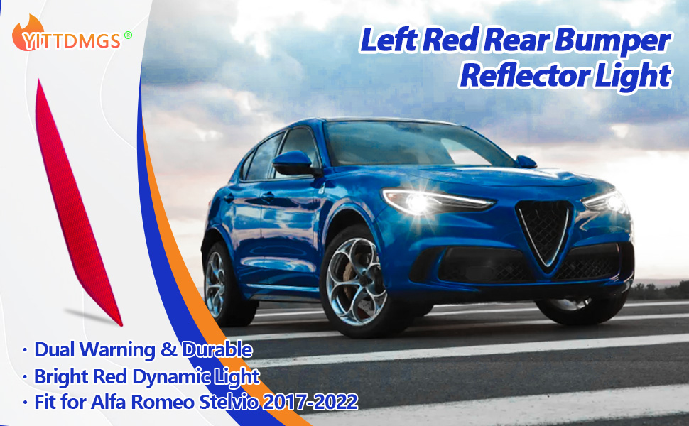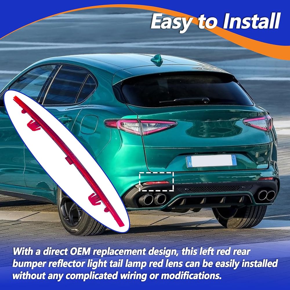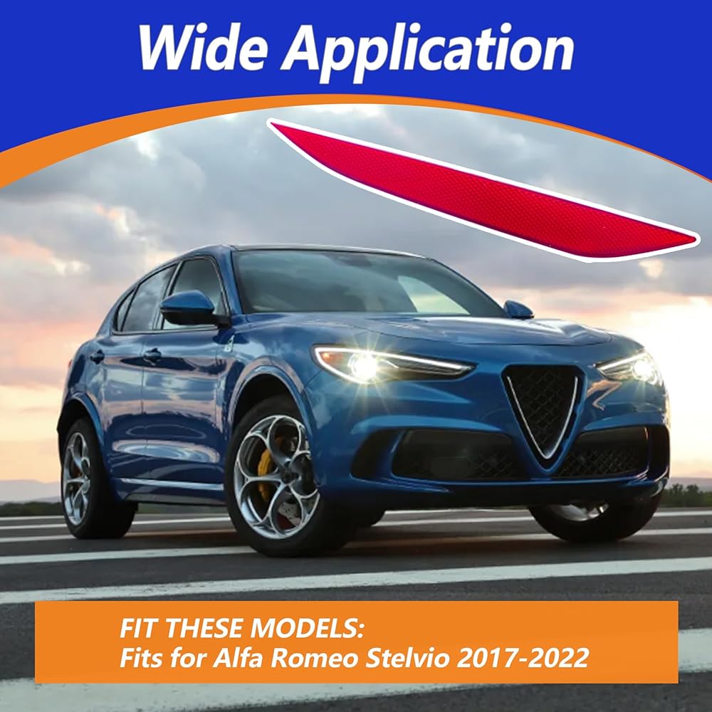 تكيف دقيق: ضوء عاكس المصد الخلفي الأحمر الأيسر يناسب تمامًا Alfa Romeo Stelvio 2017 2018 2019 2020 2021 2022