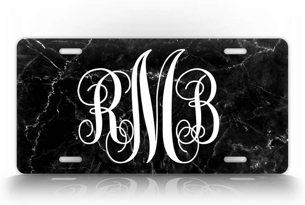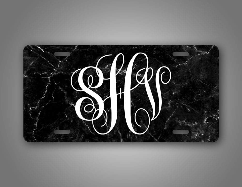 Customize this black marble monogram license plate with your own initials. Features a nice black marble background with a classy white font. These license plates are sold as novelty plates only and are not intended to replace the state-issued plates. Our license plates are made for continuous use on your car, truck, van or SUV. This handcrafted auto tag is made from 100% aluminum and will never rust! A tough metal coating and vibrant inks that are UV-fade resistant all combine to make this license plate a pleasure to behold and a joy to have on your vehicle! You and your friends will love the look of this black marble monogram tag on your automobile. Not embossed. Made in the USA. Handcrafted in Tennessee. Wholesale orders welcome.