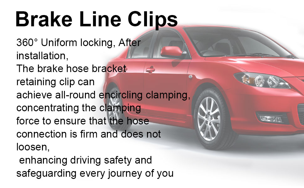 قفل موحد بزاوية 360 درجة: بعد التثبيت، يمكن لمشبك الاحتفاظ بدعامة خرطوم الفرامل أن يحقق تثبيتًا دائريًا شاملاً، مع تركيز قوة التثبيت لضمان أن يكون اتصال الخرطوم ثابتًا ولا يرتخي، مما يعزز سلامة القيادة ويحمي كل رحلة تقوم بها