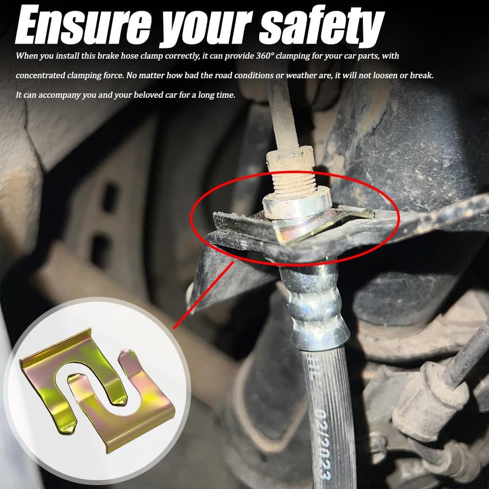 مجموعة تخزين محمولة: تحتوي كل مجموعة على 10 مثبتات خرطوم فرامل معدنية، تلبي احتياجات الاستبدالات المتعددة أو النسخ الاحتياطية. صغير الحجم وخفيف الوزن، ويمكن وضعه بحرية في مساحة تخزين السيارة وإخراجه حسب الحاجة