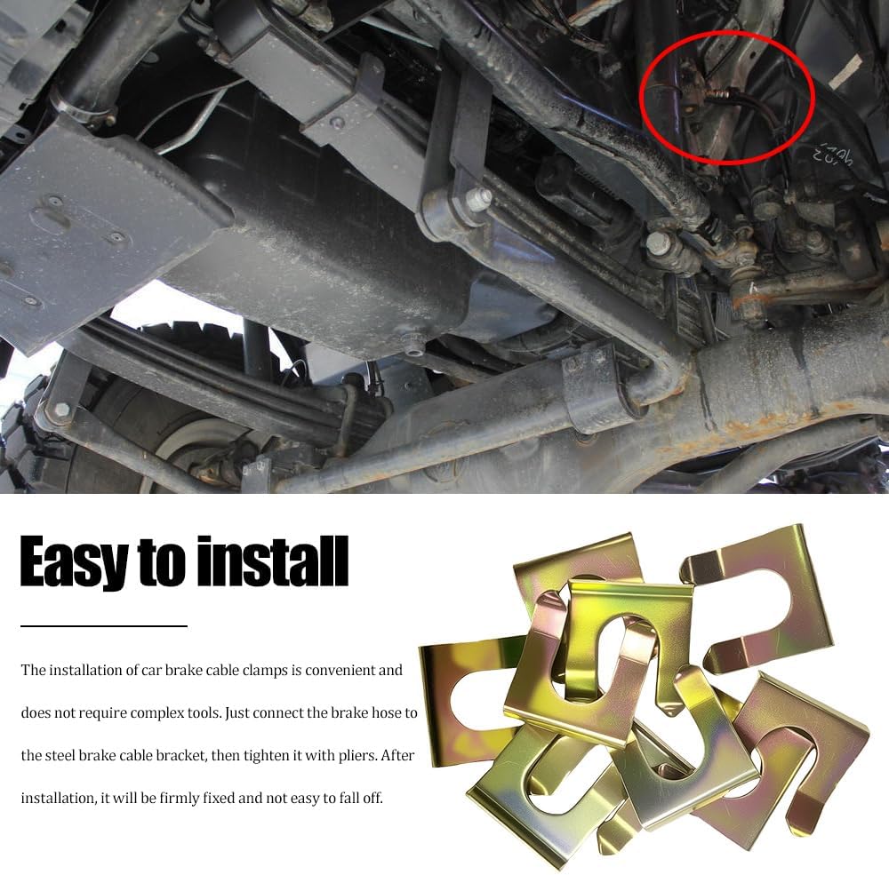 سهل التركيب: تركيب مشبك فرامل الانتظار المعدني هذا على شكل حرف U يتطلب فقط استخدام كماشة. أثناء التثبيت، قم بتوصيل خرطوم الفرامل بالدعامة المرفقة بسلك الفرامل الفولاذي، ثم قم بربط المشبك بالكماشة. إنها خطوة بسيطة. إنها مريحة للغاية وسريعة