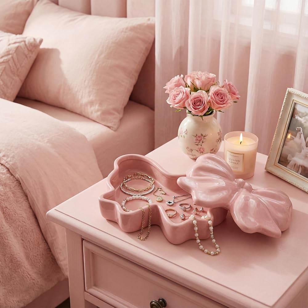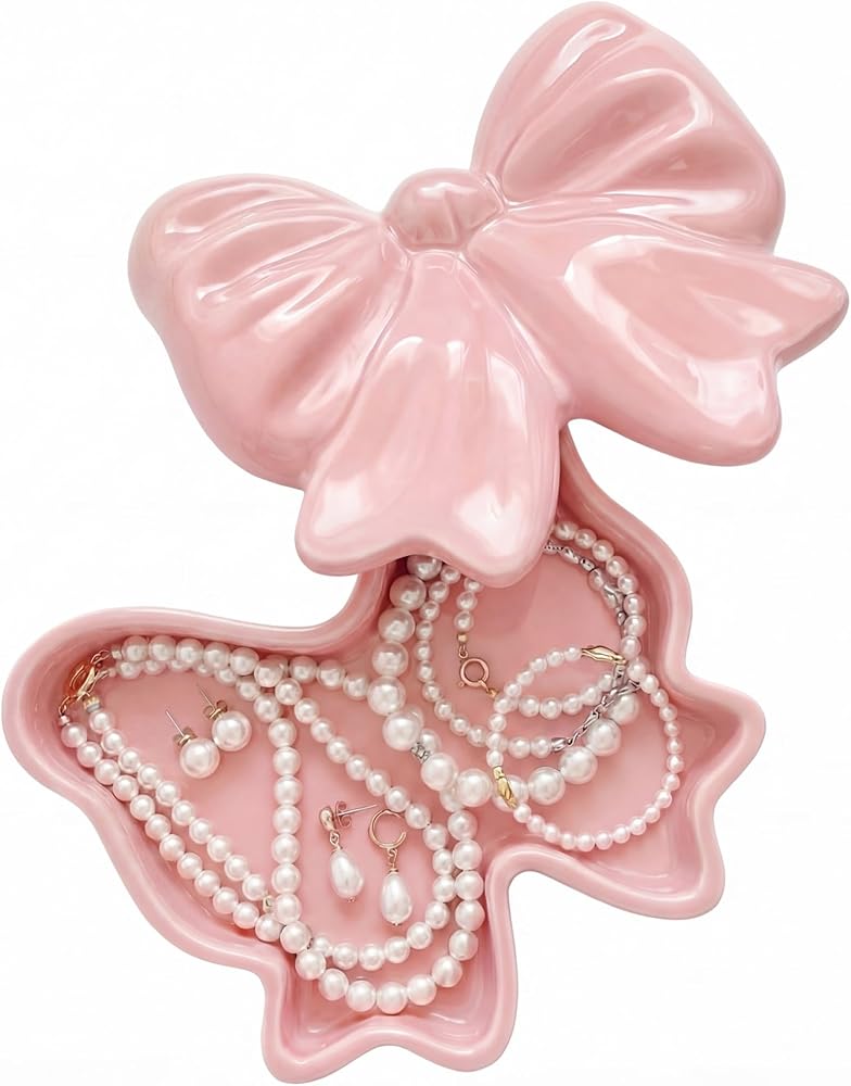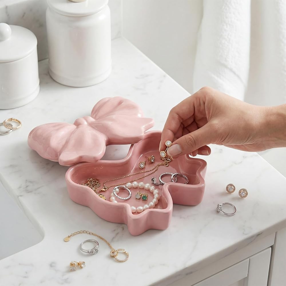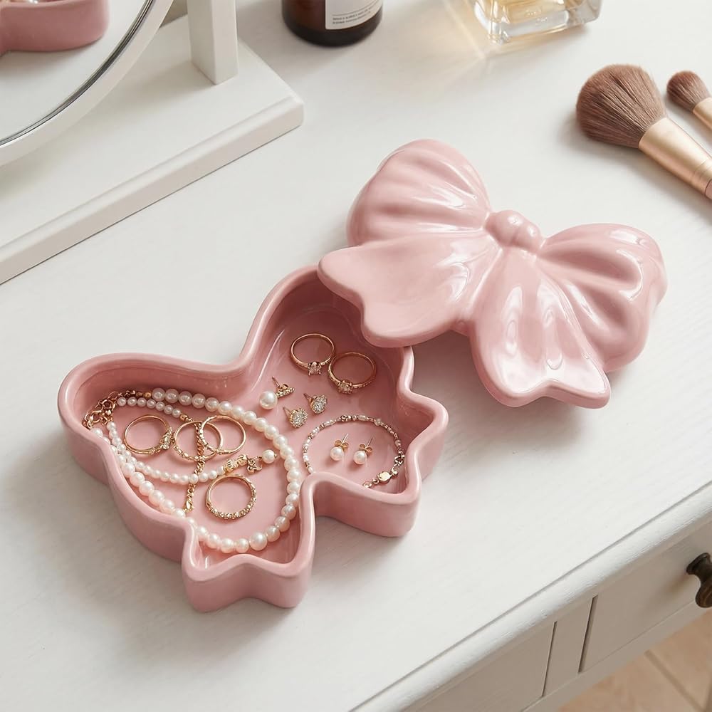 This bow-shaped jewelry box features crafted design elements. More than just a jewelry container, it serves as adorable decoration that adds natural beauty to your space.