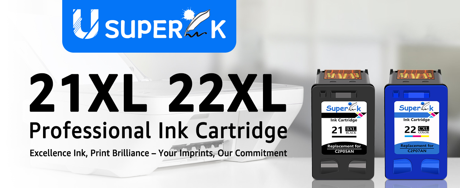 محتويات العبوة: بديل مُعاد تصنيعه SuperInk لخرطوشة حبر OEM HP 21XL 22XL عالية الإنتاجية باللون الأسود وثلاثية الألوان. (1 أسود، 1 ثلاثي الألوان)