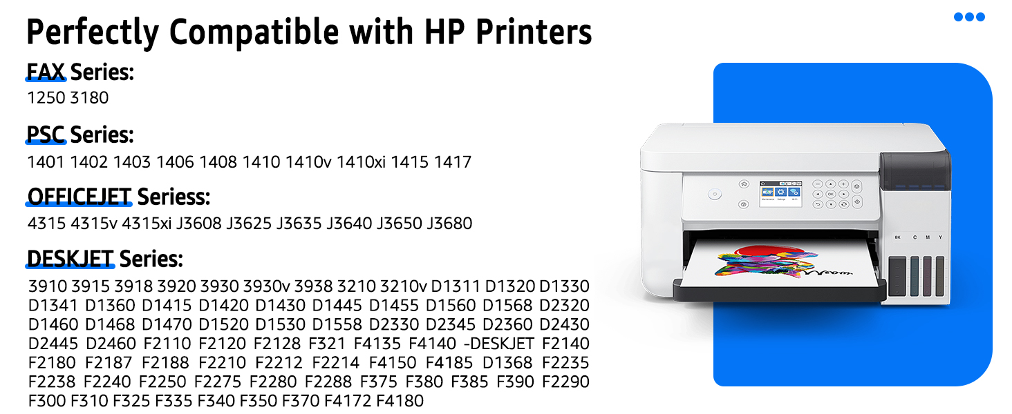 متوافق مع طابعة HP: OFFICEJET 4315 4315v 4315xi J3608 J3625 J3635 J3640 J3650 J3680؛ PSC 1401 1402 1403 1406 1408 1410 1410v 1410xi 1415 1417; فاكس 12503180.