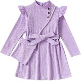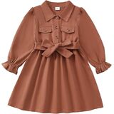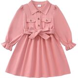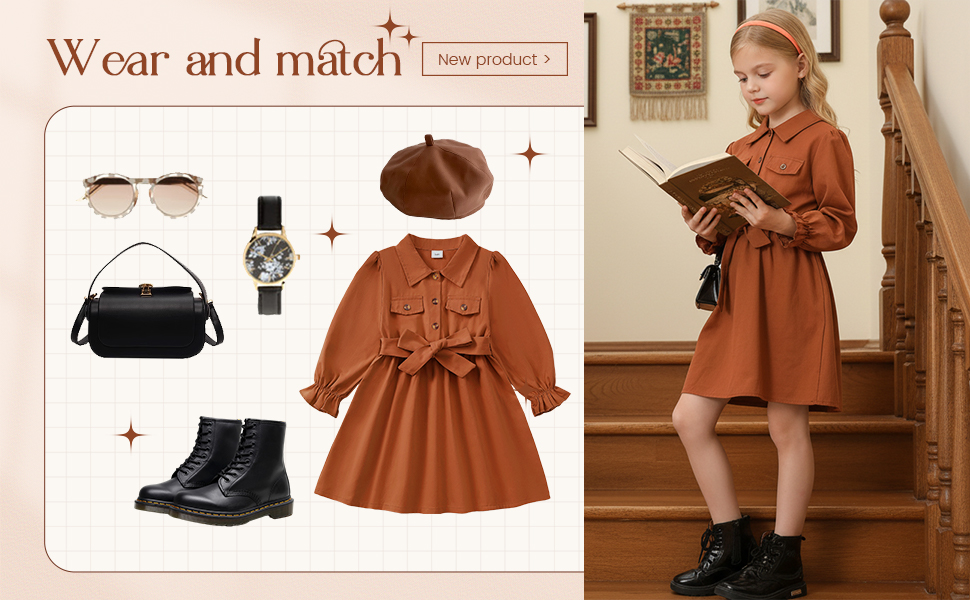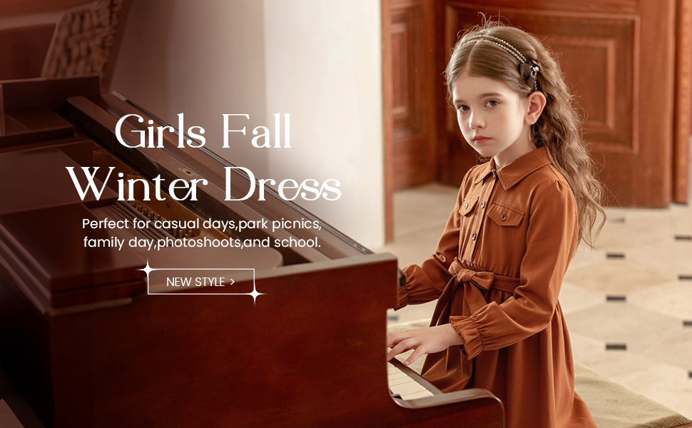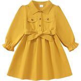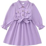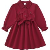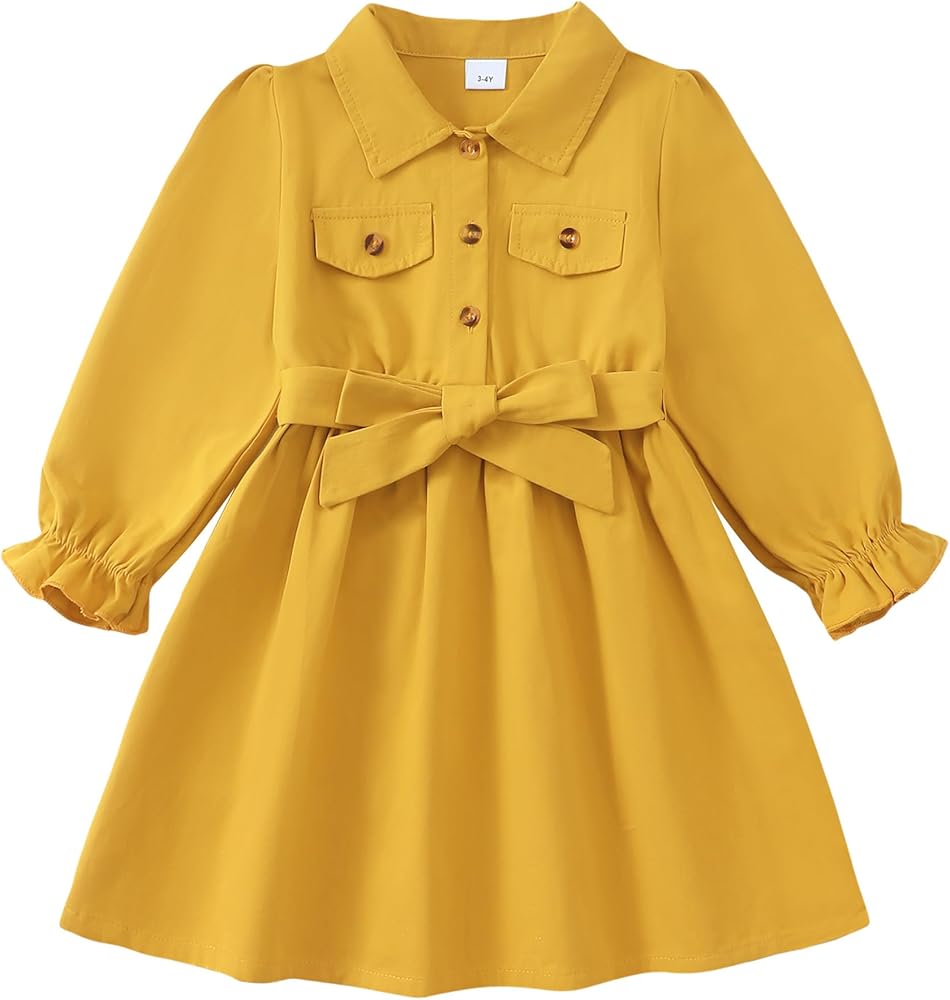 Elevate your little one's wardrobe with this charming button-up dress, crafted from 100% cotton to offer a soft, breathable, and skin-friendly wearing experience, perfect for fall, winter, and spring. The dress features a classic collar and practical front buttons that make dressing a breeze. The long puff sleeves add a touch of whimsy and elegance, finished with delicate gathered cuffs, and two decorative pockets. Embodying a stylish toddler fashion clothing design, the dress's silhouette is beautifully defined by an attached belt tie at the waist that can be tied into a bow to create a lovely, gathered effect, and the flared skirt design allows for comfortable movement throughout the day. Available in sizes like 3t, 4t, for 4-5 year olds, 5-6 year olds, 6-7 year olds, and 7-8 year olds.Ideal for various occasions such as formal days, family photos/gatherings, happy playdates, daily school wear, weekend travels, picture-day moments, birthdays, and also suiting holidays like Thanksgiving and Christmas, it combines timeless style with practical comfort. Each package includes this cute long-sleeve dress with a cloth belt, and they are machine washable for easy care. The high-quality construction ensures durability for active wear, while the classic design elements make it a timeless piece that never goes out of style.