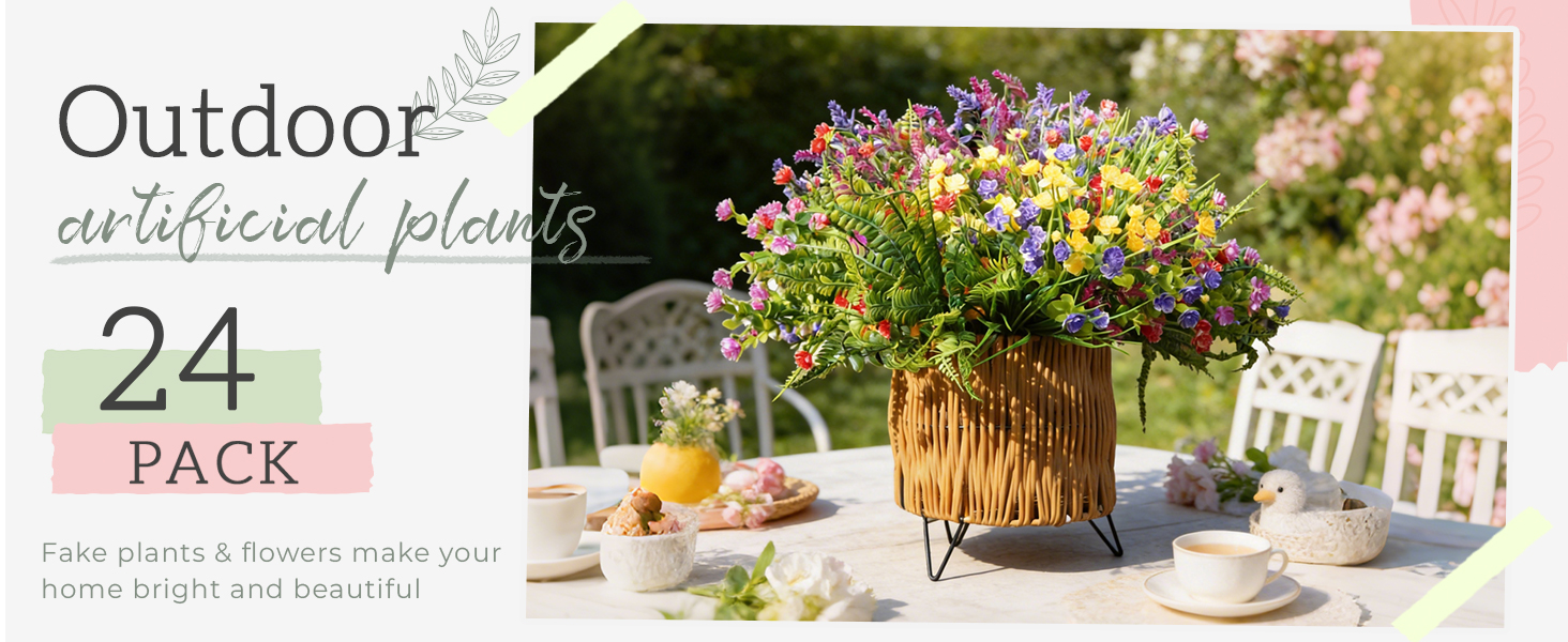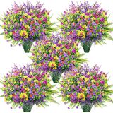 تصميم أنيق مختلط: تأتي هذه الزهور الاصطناعية النابضة بالحياة للاستخدام في الهواء الطلق في 24 حزمة، مع 6 ألوان مختلفة من الزهور الاصطناعية ونوعين مختلفين من النباتات المزيفة في الهواء الطلق، مما يخلق مزيج ألوان كامل ومتوازن جيدًا يعزز الباحات والشرفات ومزارعي الحديقة.