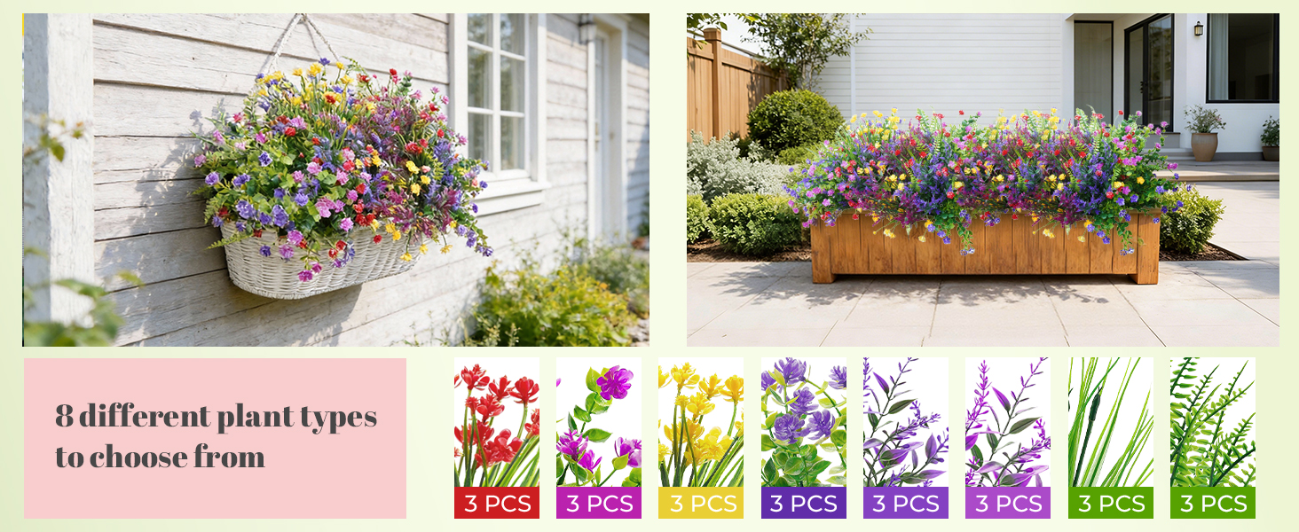 سحر على مدار العام: أضف جمال الربيع إلى حديقتك المنزلية طوال العام مع هذه الزهور البرية الاصطناعية للزينة الخارجية، مثالية لأي موسم، دون الحاجة إلى الري أو الصيانة المستمرة
