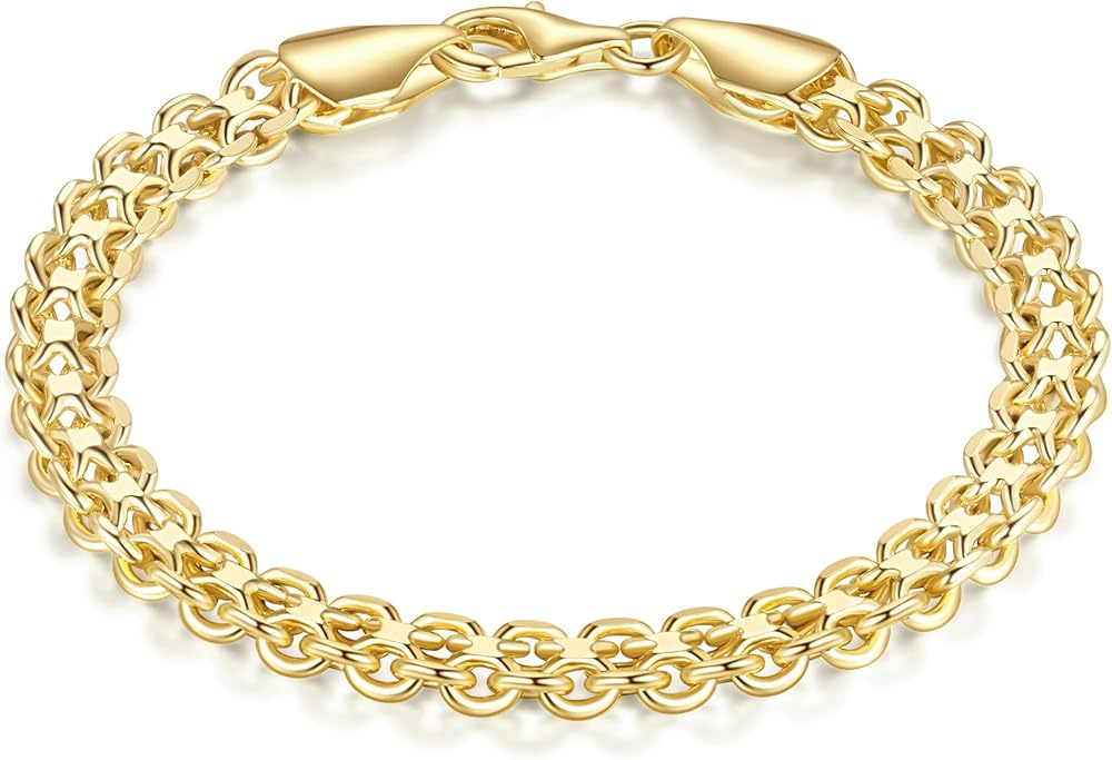 Expertly crafted from premium materials, this 14k gold plated bracelets for women trendy is designed to resist tarnishing while delivering lasting elegance and strength. The refined mesh chain design of the 14k gold plated bracelet for women blends modern style with timeless appeal, making the women's link bracelets an easy match for everyday outfits as well as dressier looks. Built with comfort and reliability in mind, the mens bracelet gold is finished with a secure lobster clasp that stays firmly in place while maintaining a polished appearance. Offered in sizes from 6.5 to 9 inches, this versatile gold bracelets for men suits a wide range of wrist sizes and styling preferences. The 14k gold bracelet for men's distinctive interlocking structure enhances strength while adding visual depth and character. Whether worn alone, layered with other mens gold bracelet, or given as a thoughtful present, this elegant gold bracelets for women non tarnish is a meaningful way to express style, care, and appreciation for women. Add these womens bracelets gold to your collection and let the womens gold bracelet's graceful curves bring a subtle, lasting charm to your everyday style.