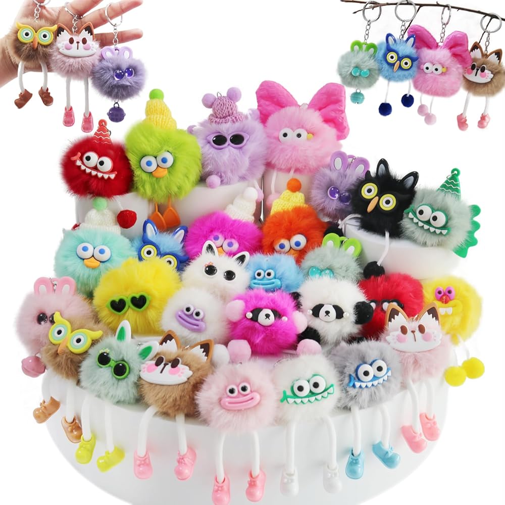 28 قطعة من سلاسل المفاتيح القطيفة اللطيفة | سلاسل مفاتيح كاواي الغامضة لتفضلات الحفلات | حشو بيض عيد الفصح، جوائز الفصل الدراسي، حشو حقائب الهدايا الجيدة، ألعاب بيناتا ومكافآت كرنفال المدرسة