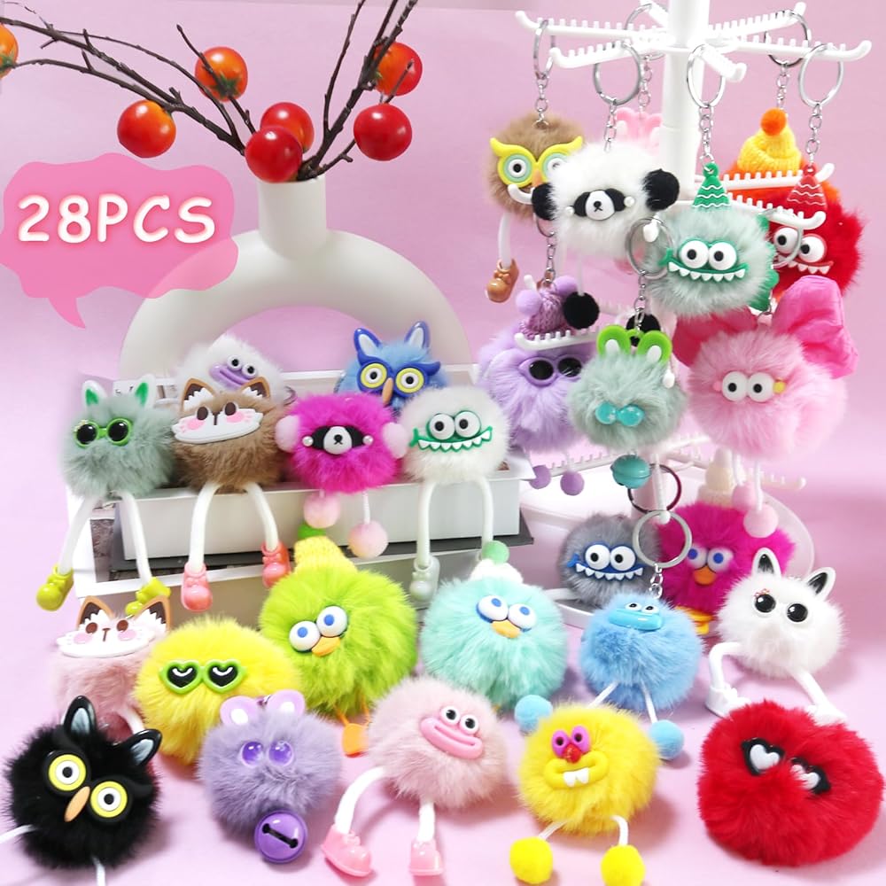 • Rich & Diverse Designs: Our plush keychains feature 28 unique styles and shapes. With such a wide variety, you'll have plenty to share with family and friends, perfect for matching or collective looks. Ideal for anyone who loves expressing personality with cute, fuzzy accessories