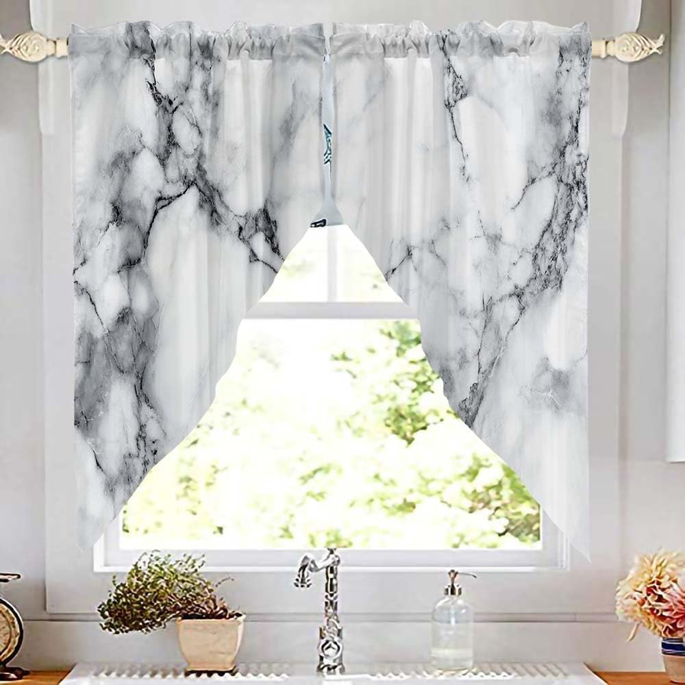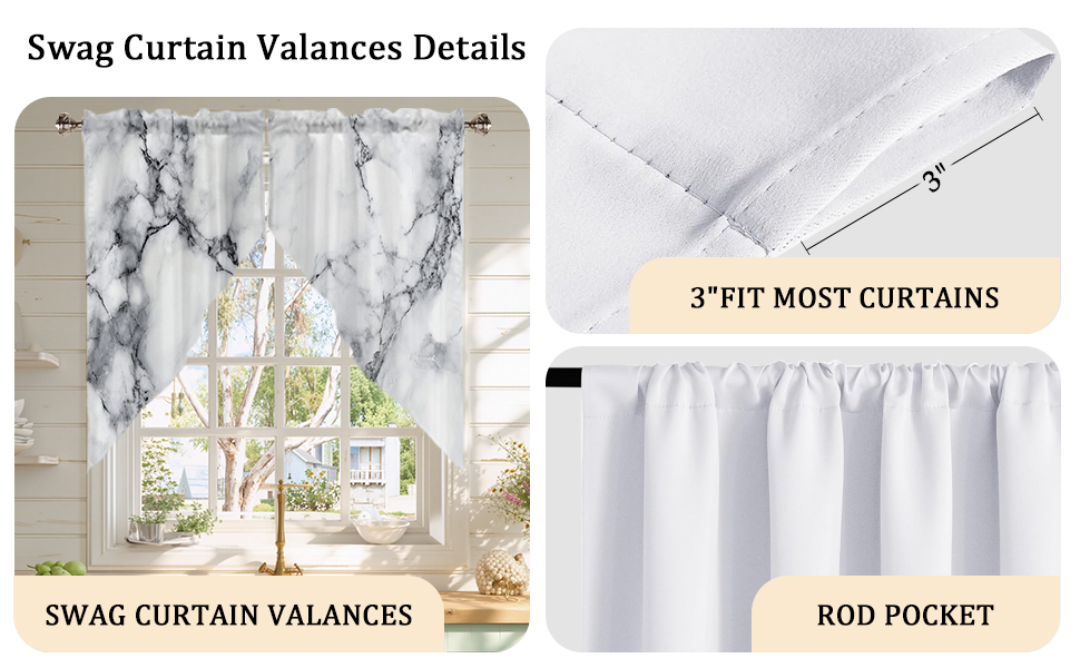 تركيب التنظيف: ستارة معالجة النوافذ، يمكن غسلها في الغسالة أو يدويًا، مما يوفر واقعك. التركيب بسيط، أدخل قضيب ستائر المطبخ من خلال الفتحة الموجودة أعلى رأس الستارة، ثم اضبطه.