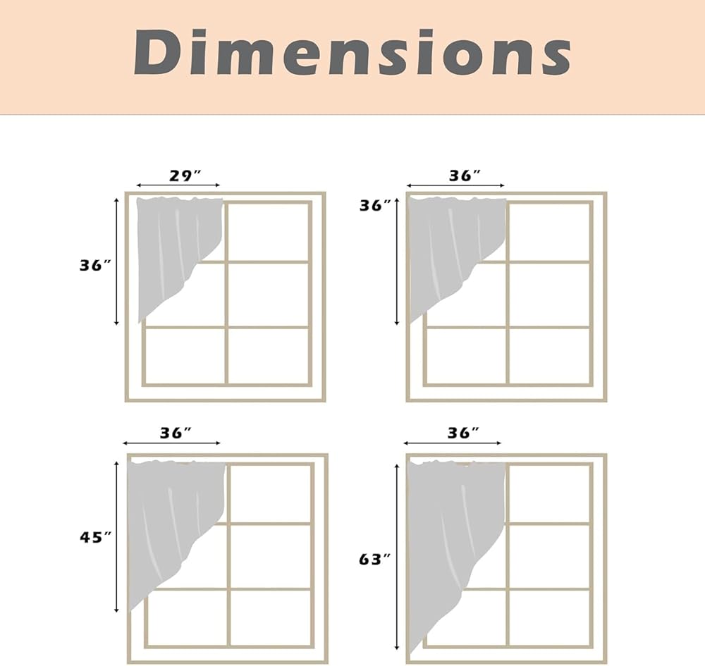 حجم مثالي: مجموعات ستائر المطبخ للنوافذ، 29 بوصة عرض × 36 بوصة طول، 36 بوصة عرض × 45 بوصة طول، 36 بوصة عرض × 36 بوصة، 36 بوصة عرض × 63 بوصة طول، ألواح مكونة من 2، مناسبة لمجموعة متنوعة من النوافذ. مناسبة لقضبان الستائر مقاس 3 بوصات، يمكنك شراء ستائرنا الفاخرة بثقة.
