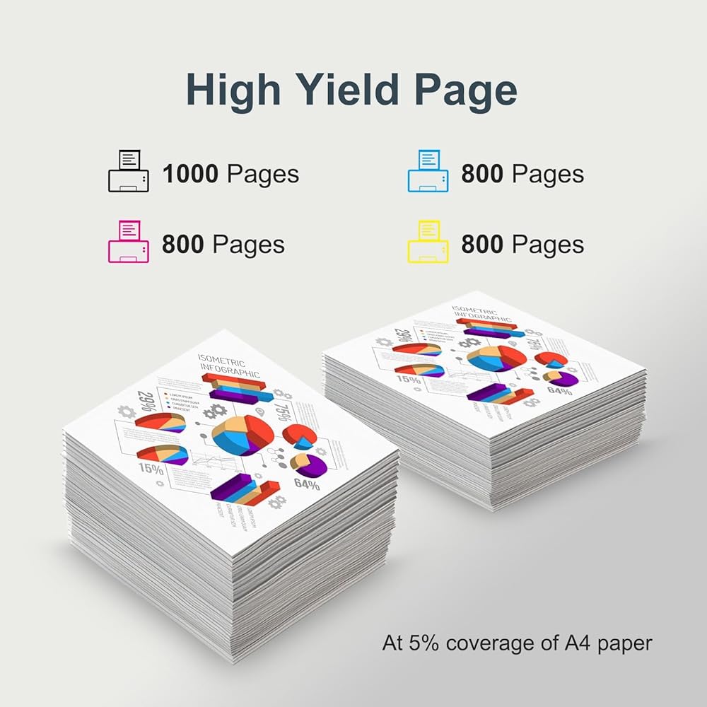 - High Page Yield: 1,000 pages for black 923XL 923e, 800 pages for color 923 XL ink cartridge at 5% coverage (Letter/A4)