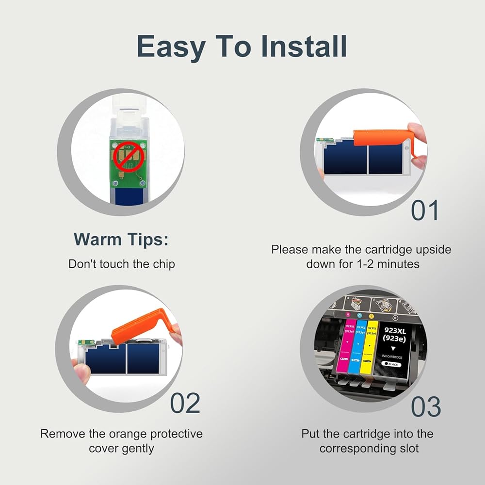 - Package includes: 923XL Ink Cartridges Combo Pack (1 * Black 923XL Ink Cartridge, 1 * Cyan 923XL Ink Cartridge, 1 * Magenta 923XL Ink Cartridge, 1 * Yellow 923XL Ink Cartridge, Total 4 Pack)