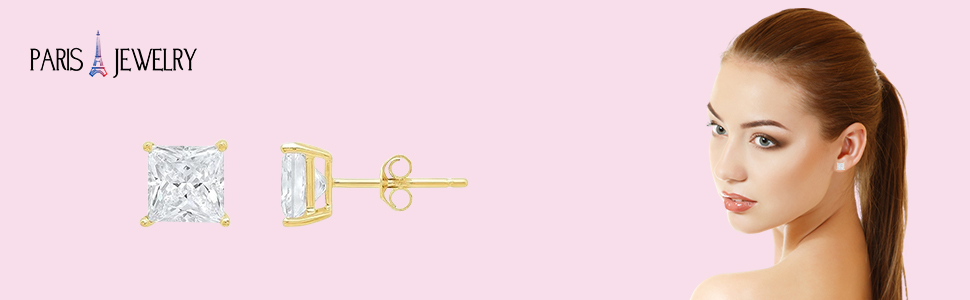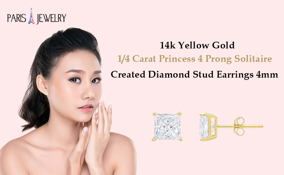 مجوهرات باريس 14 قيراط من الذهب الأصفر 1/4 قيراط الأميرة 4 شقوق سوليتير مكونة من الماس 4 مم