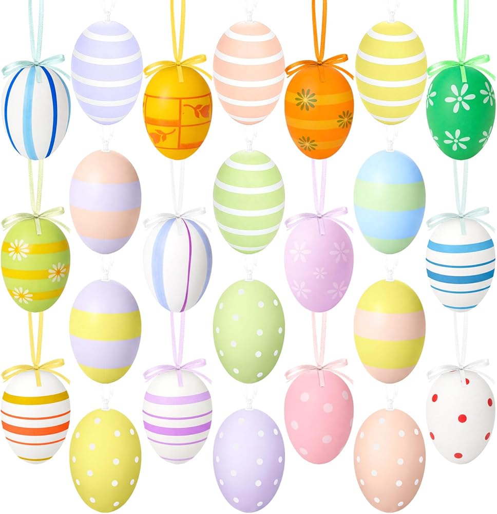 24 قطعة من زينة بيض عيد الفصح، زينة بلاستيكية لتعليق عيد الفصح للأشجار، بيض عيد الفصح للأماكن الداخلية والخارجية، بيض زخرفي ملون للحرف اليدوية والحفلات المدرسية والمكتب وديكور المنزل وهدايا عيد الفصح [JIstyle] in Kuwait