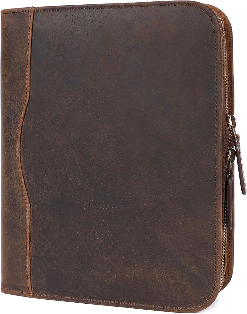 منظم محفظة الأعمال - هذا المجلد الصغير للمحفظة يعادل النمط العتيق لحافظة الصياد، والذي يتضمن حامل أقلام قابل للفصل، وحامل بطاقات، وحامل مفاتيح، ودفتر ملاحظات حلزوني.