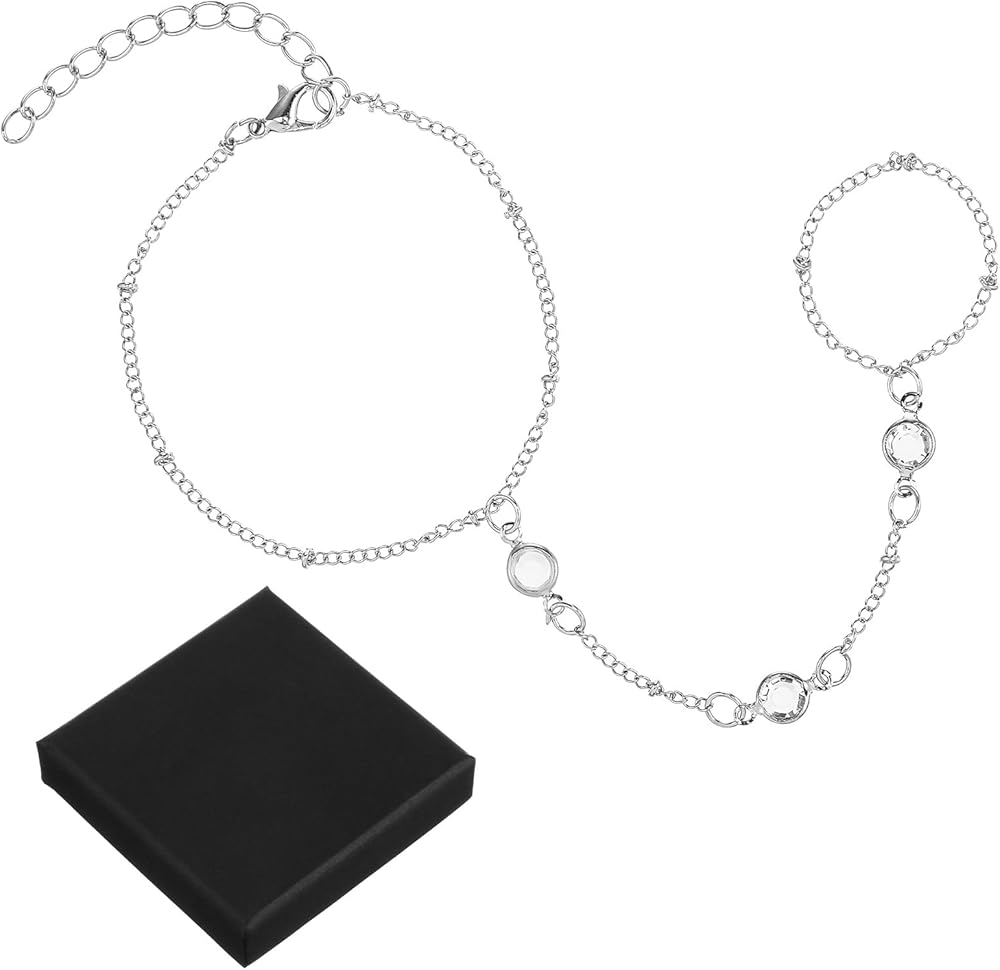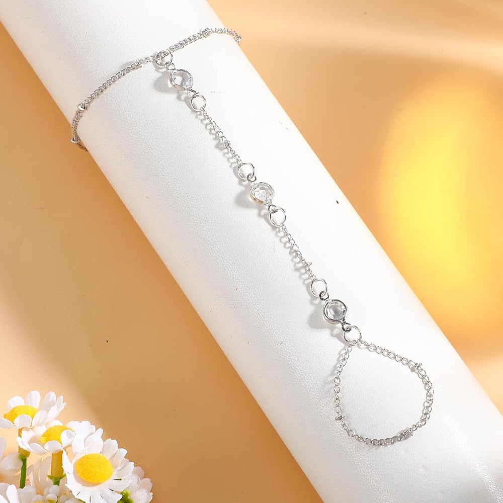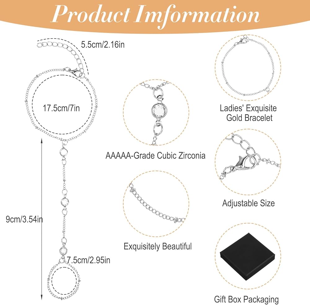 • 【Premium Material】Crafted from brass with silver plating, this hand chain bracelet features zircon embellishments for brilliant sparkle. The ring bracelet is safe even for sensitive skin, ensuring all-day comfort without irritation or discoloration.