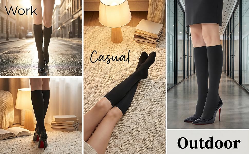 • تتناسب بسهولة مع ملابسك ومناسباتك: تتناسب هذه الجوارب الكلاسيكية مع التنانير القصيرة والسراويل القصيرة والمعاطف الطويلة والأحذية القماشية والملابس المكتبية بسهولة. إكسسوار يجب اقتناؤه للارتداء في طبقات في الخريف أو الشتاء أو أيام الصيف الباردة - أنيق وعملي.