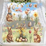 Watercolor Easter Window Decoration Decals Vintage Bunny Clings for Glass Double-Side Removable Rabbit Static Decal Reusable Flowers Easter Egg Vinyl Sticker for Home Farmhouse