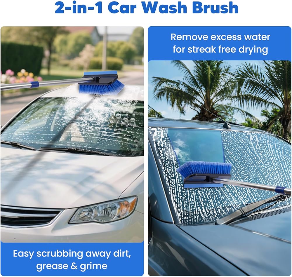 • ممسحة فرشاة غسيل السيارة بمقبض طويل 62 بوصة: تتميز فرشاة غسيل السيارة 2 في 1 بشعيرات ناعمة وممسحة مطاطية للتعامل مع مجموعة واسعة من مهام تنظيف السيارة. فرشاة غسيل السيارة الناعمة تنظف بلطف وتحمي أسطح السيارة دون خدش. ممسحة السيارة تزيل الماء والصابون بسرعة دون أي خطوط. شعيرات ألياف الشنيل الدقيقة في ممسحة غسيل السيارة عالية الامتصاص، مما يوفر تنظيفًا خاليًا من الوبر. القطب، بأطوال قابلة للتعديل 19 بوصة، 33 بوصة، 47 بوصة، 62 بوصة
