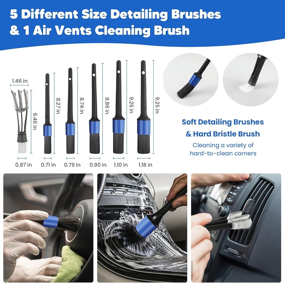 • مجموعة تنظيف السيارة الاحترافية المكونة من 17 قطعة: تتضمن مجموعة تفاصيل السيارة الفاخرة الكاملة هذه 1 دلو غسيل السيارة، 1 فرشاة غسيل السيارة، 1 ممسحة غسيل السيارة، 4 أقطاب غسيل السيارة، 1 فرشاة العجلات، 1 قفاز غسيل السيارة، 5 مجموعة فرش تفصيل السيارة، 1 منفضة غبار داخلية للسيارة، 1 فرشاة تنظيف فتحة تهوية، ومنشفة غسيل سيارة واحدة. تتعامل مجموعة غسيل السيارات الشاملة هذه ببراعة مع جميع مهام تفصيل السيارات الداخلية والخارجية، مما يوفر نتائج احترافية لا تشوبها شائبة في كل مرة. ابدأ عملية التنظيف الربيعية باستخدام مجموعة غسيل السيارات هذه