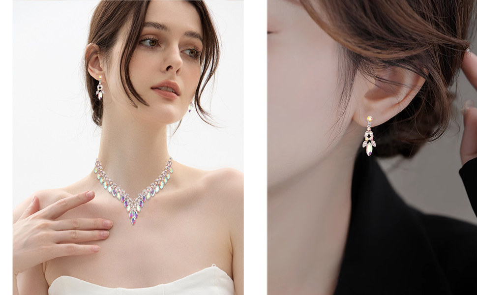 Perfect Gift: Our wedding costume accessories consists of a necklace, earrings which are very flattering and complimentary to formal wedding dresses,gowns, attires or any top.Packed into a luxury presentation box with bow,an ideal gift choice for brides, bridesmaids, grandmother, mother, daughter, wife, girlfriend, best friend, sisters, granddaughter, niece,aunt or yourself.